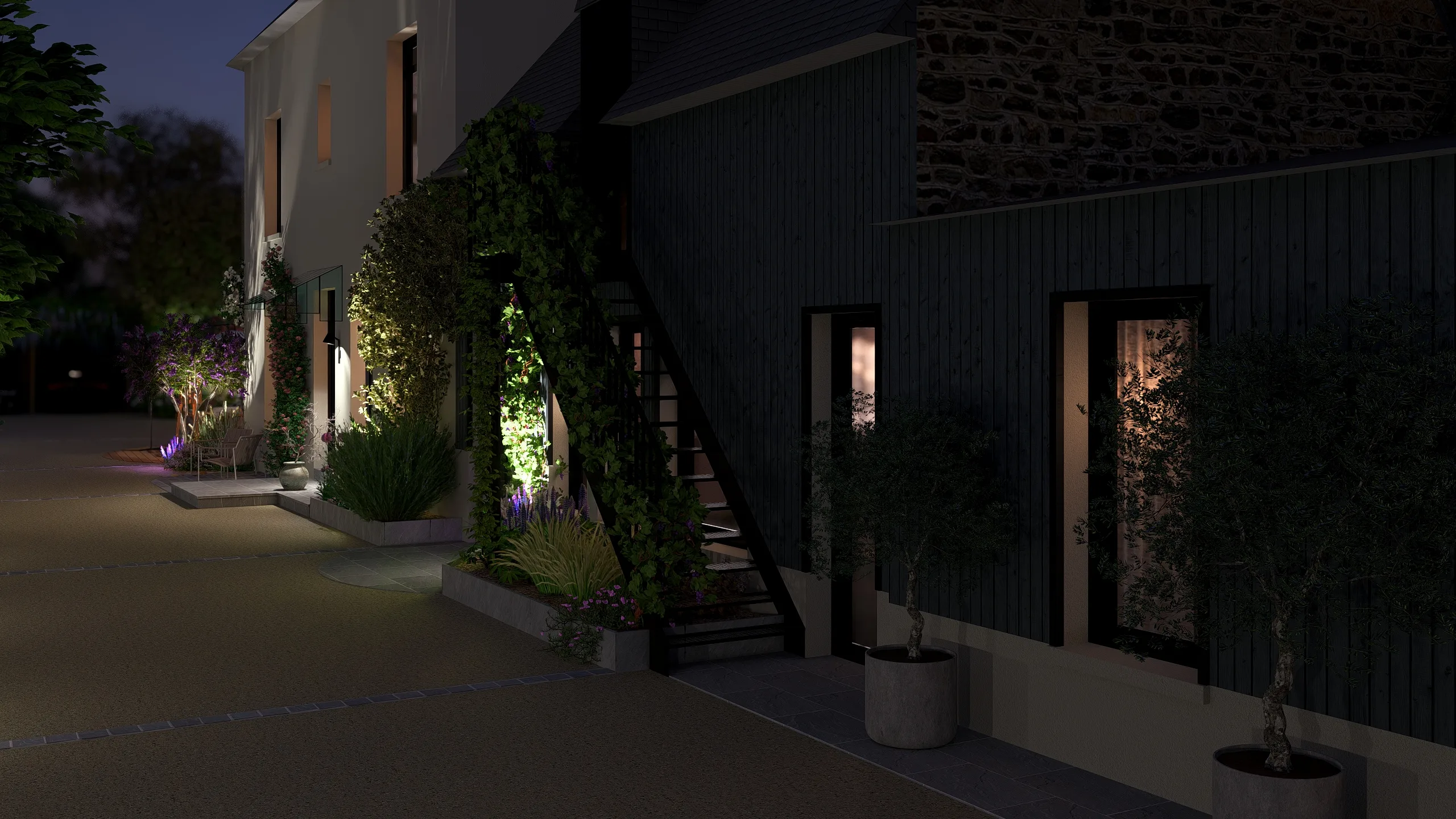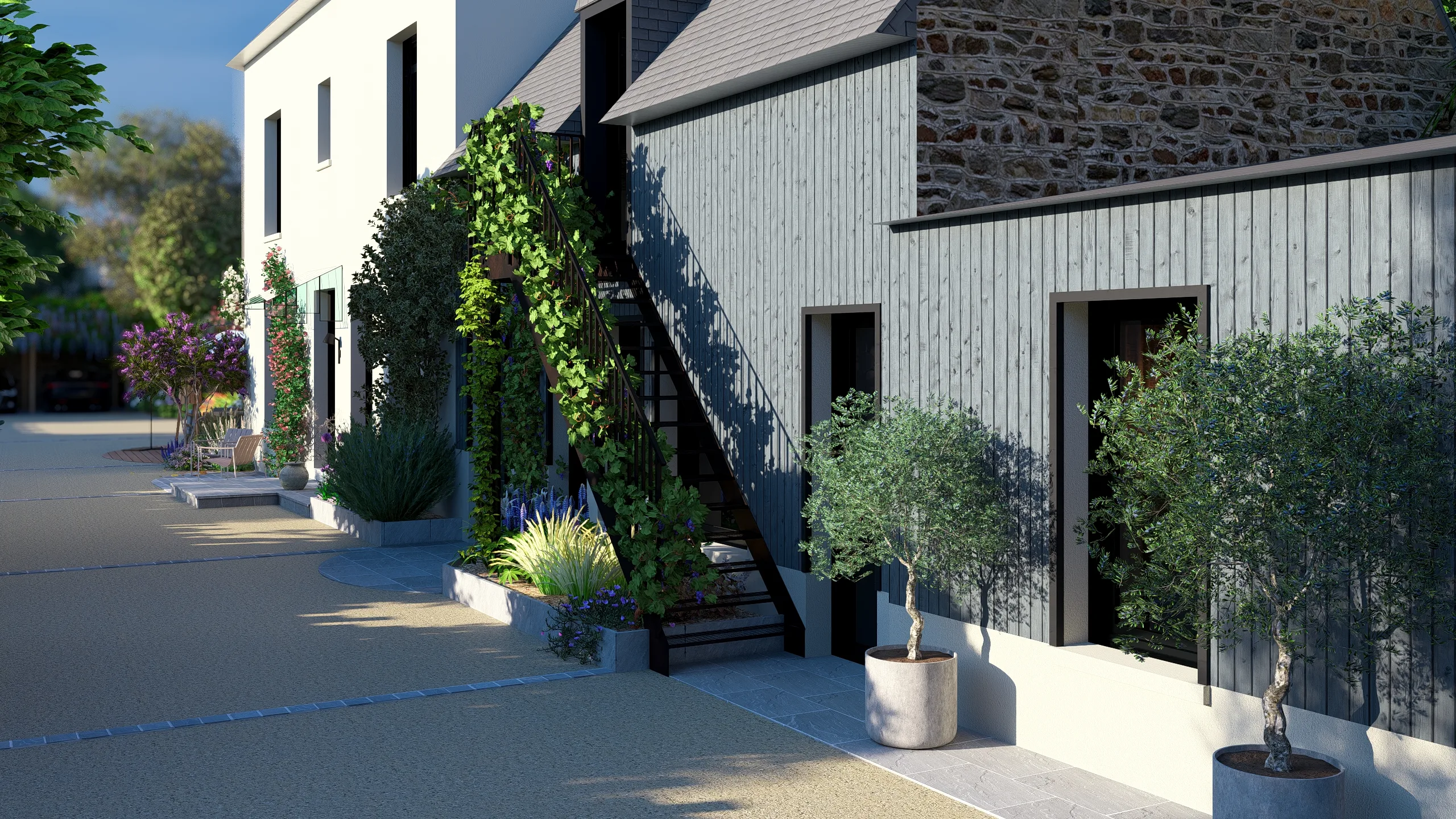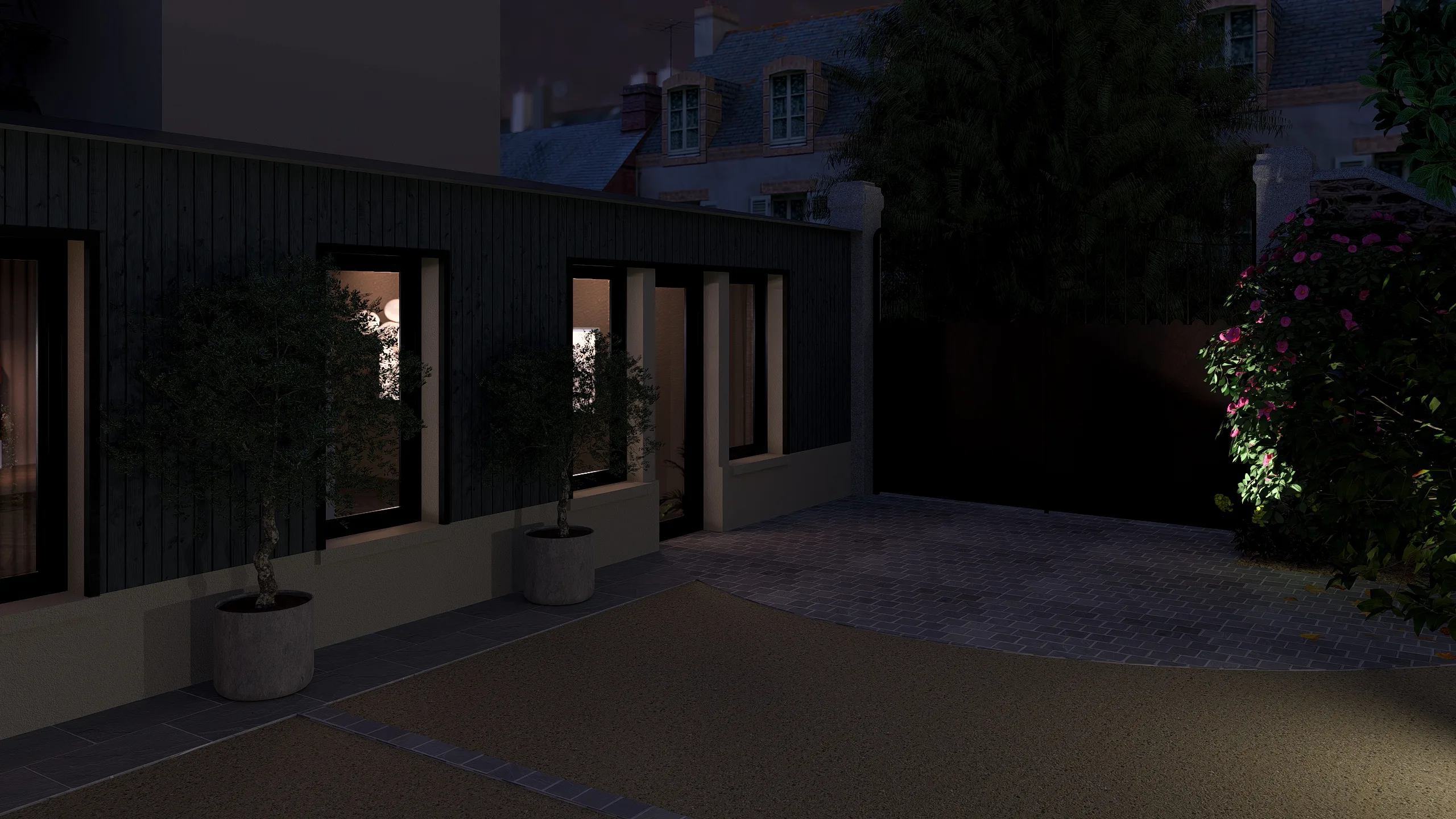 Au cœur de Fougères, ce projet prend place dans une propriété de caractère, dissimulée derrière un grand portail en fer forgé.