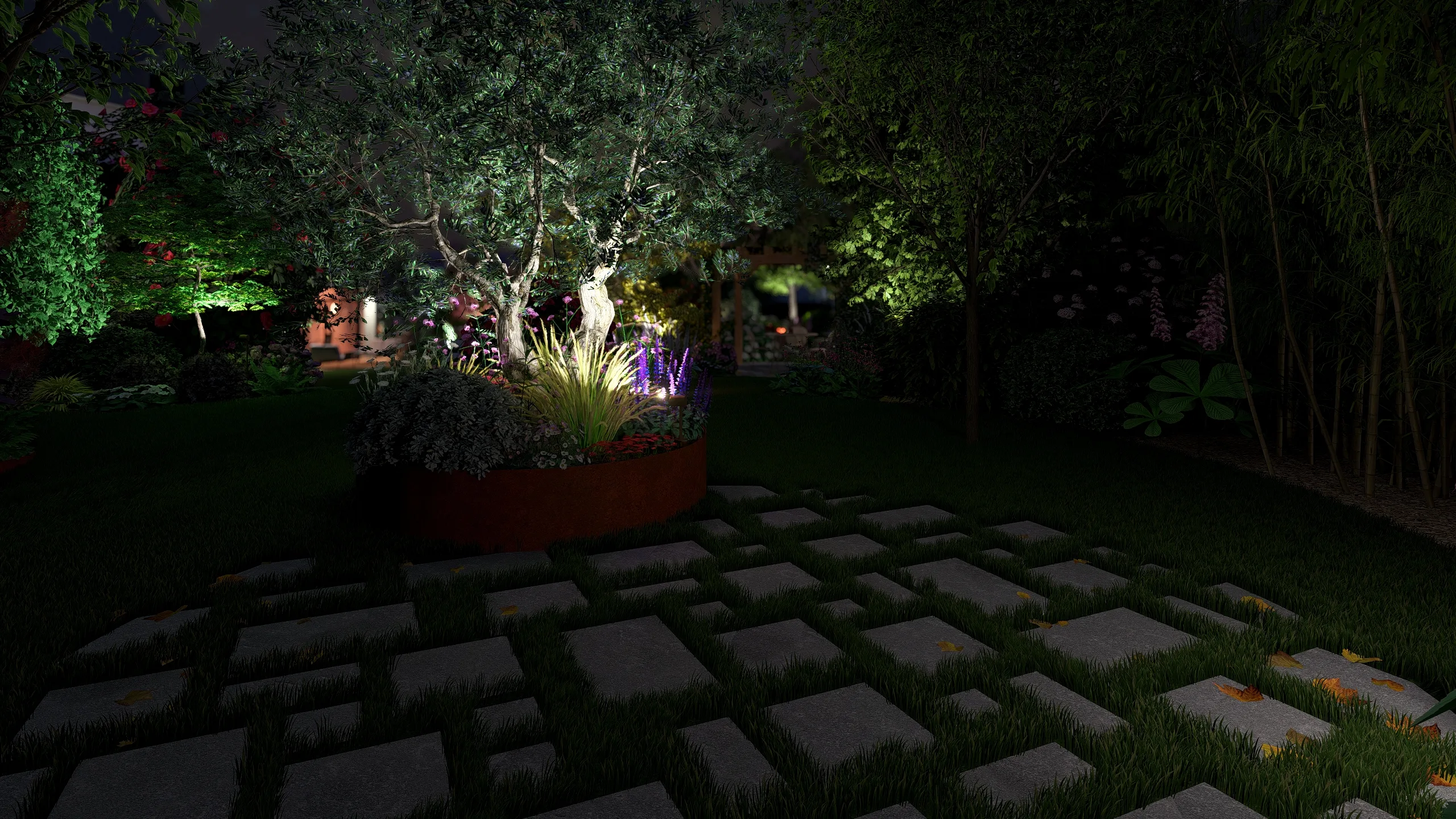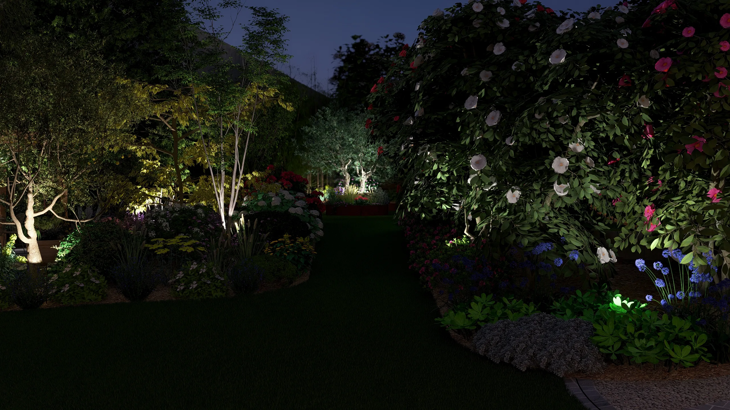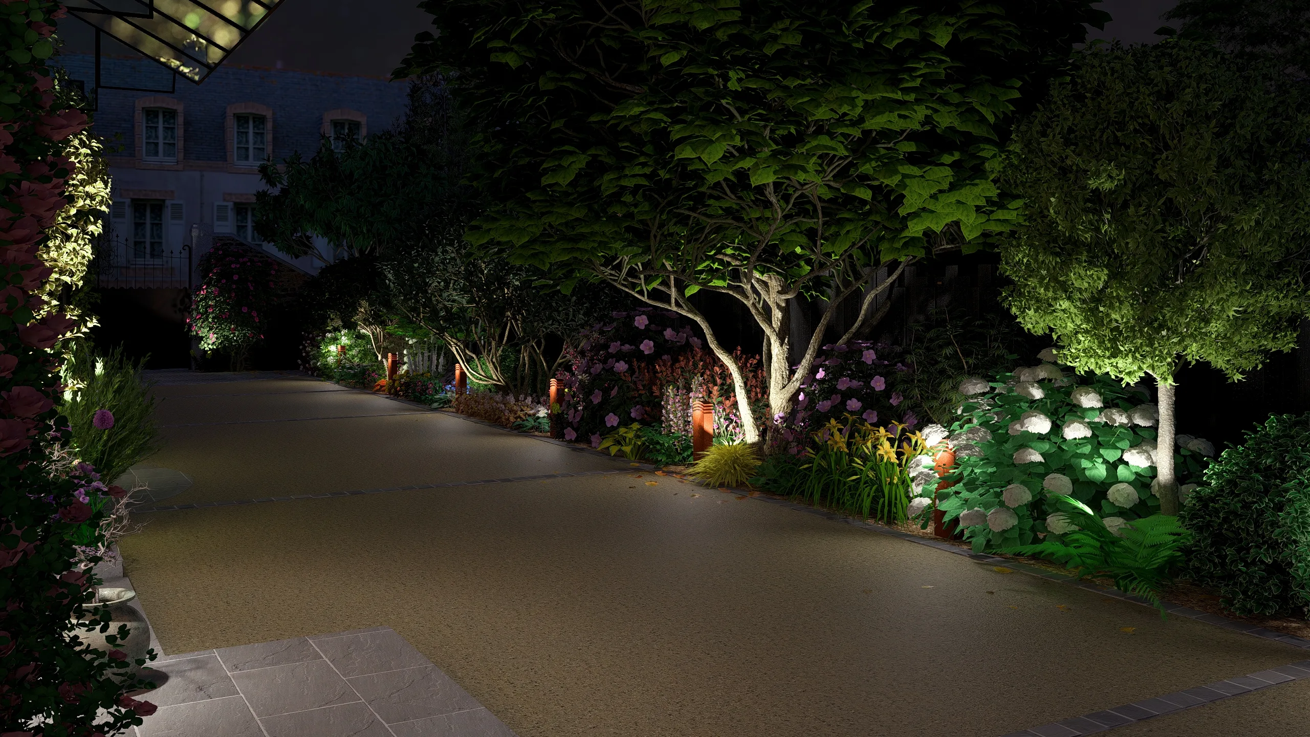 Des cheminements discrets traversent les massifs, guidant les déplacements sans jamais les contraindre. Les vues sont tantôt cadrées par la végétation, tantôt ouvertes sur des respirations plus larges, laissant le regard circuler librement.