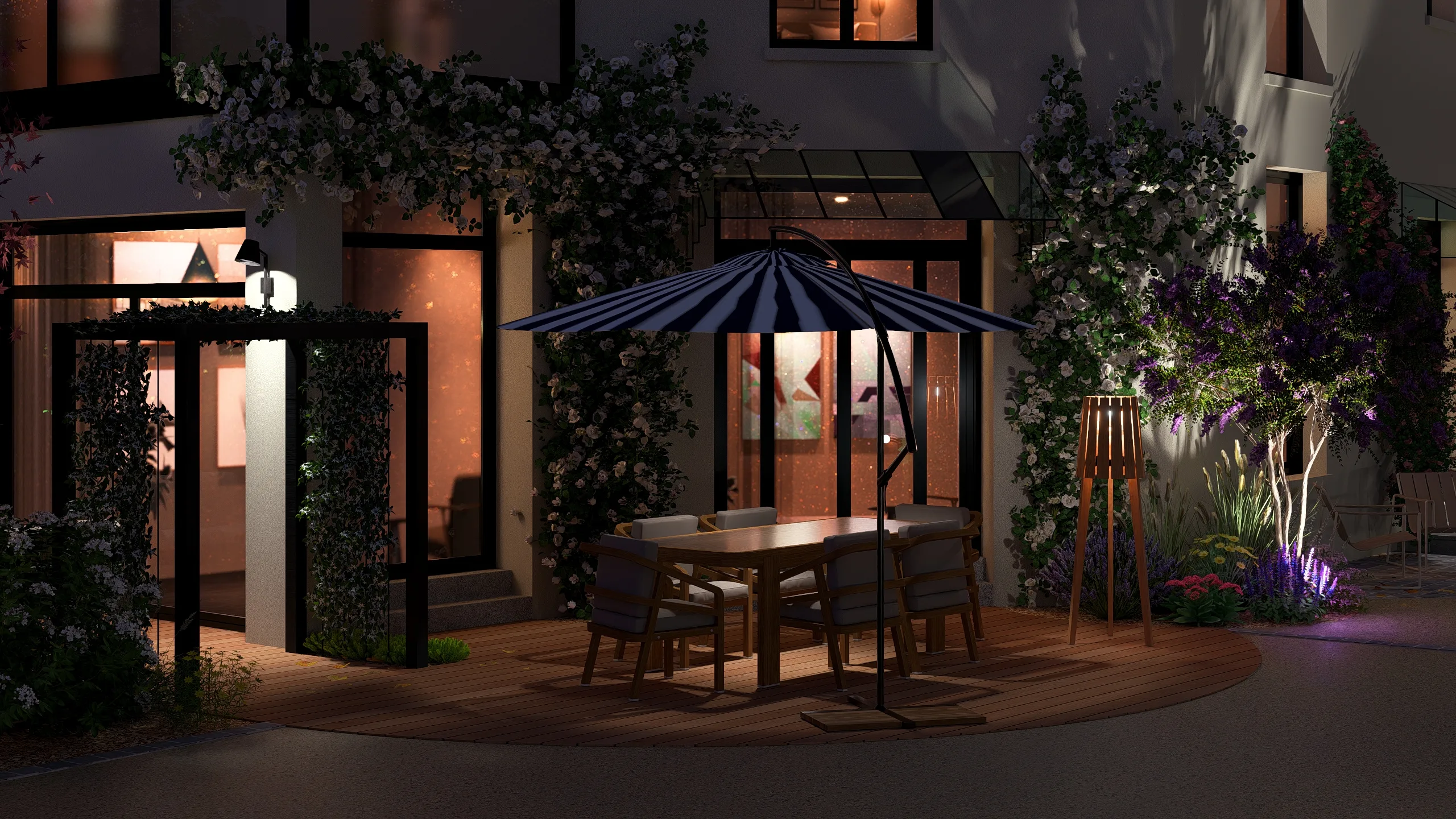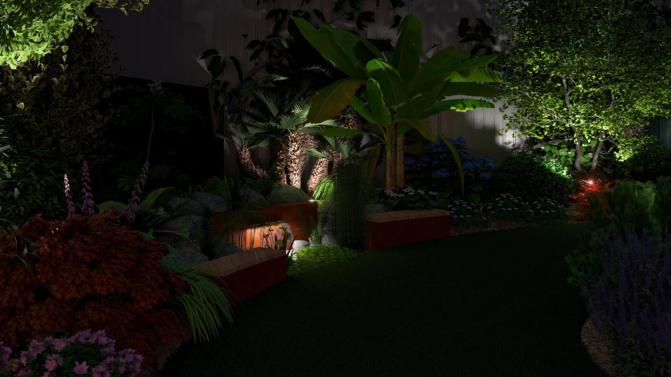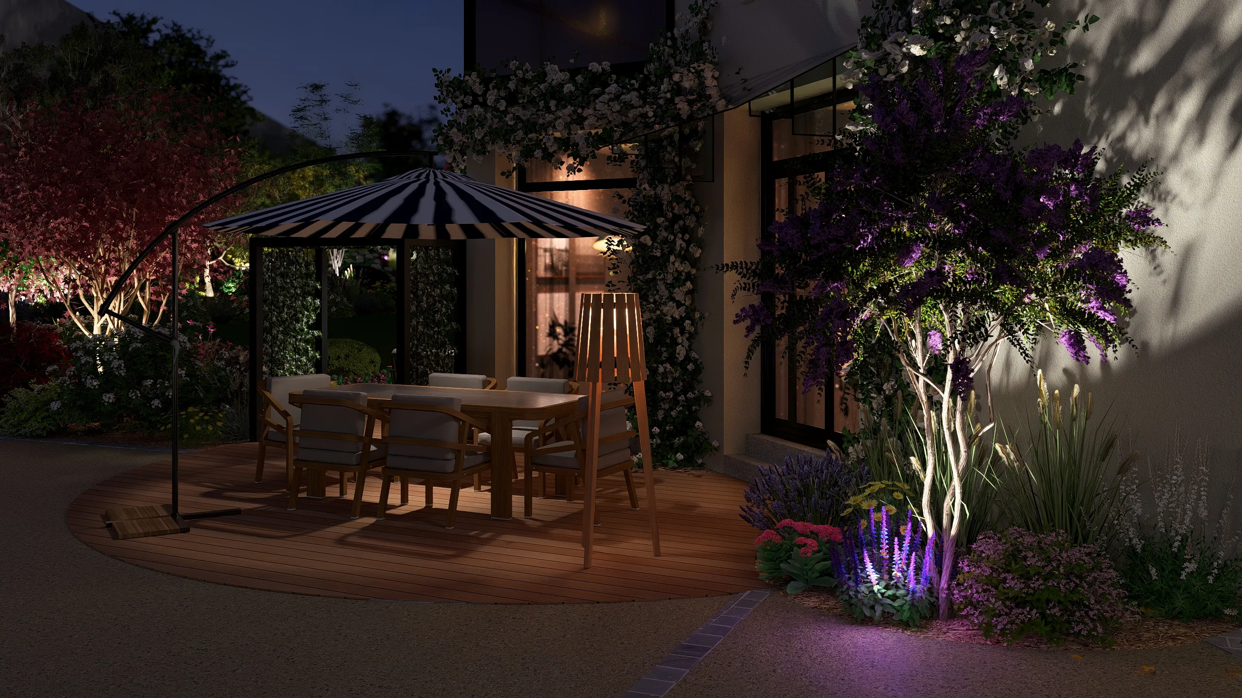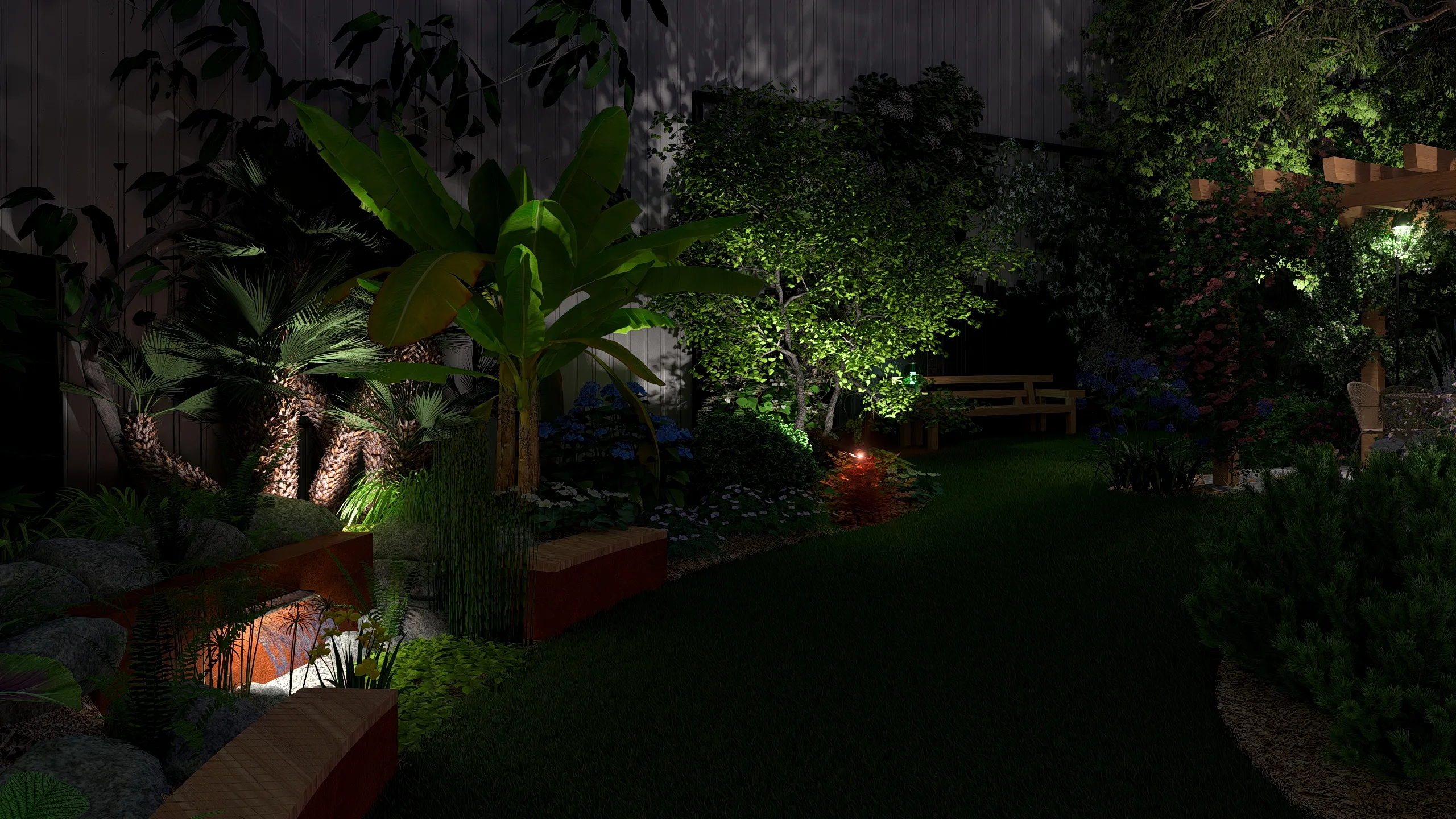 À l’emplacement d’un ancien bassin, une lame d’eau s’échappe désormais d’un mur en acier corten, apportant un mouvement discret et un rafraîchissement perceptible, aussi bien visuel que sonore. Autour, les matériaux, bois brûlé, acier, pierre, dialoguent avec le végétal dans une écriture à la fois sobre et affirmée.