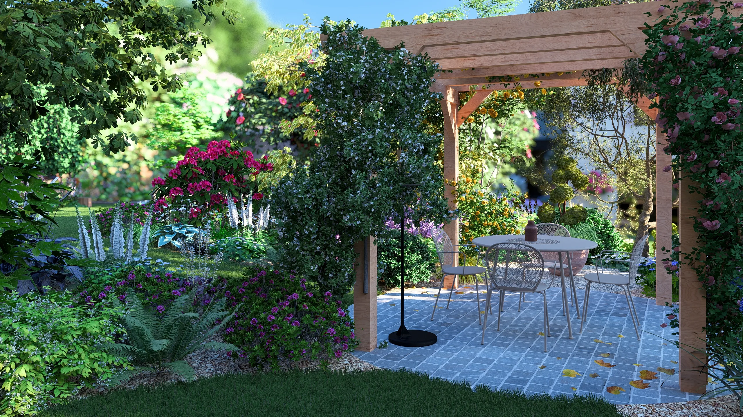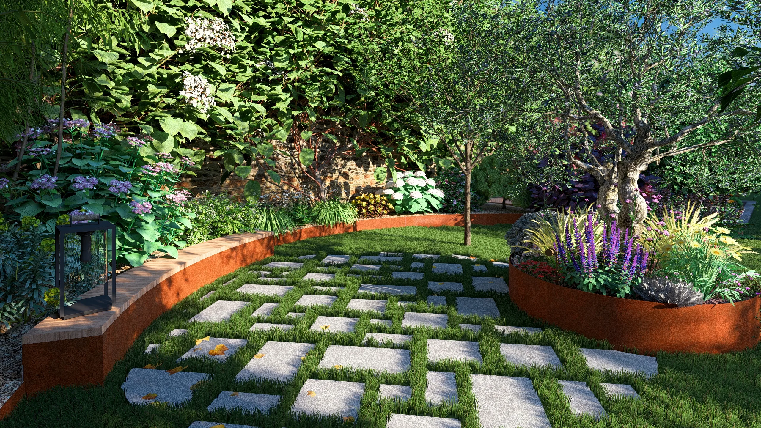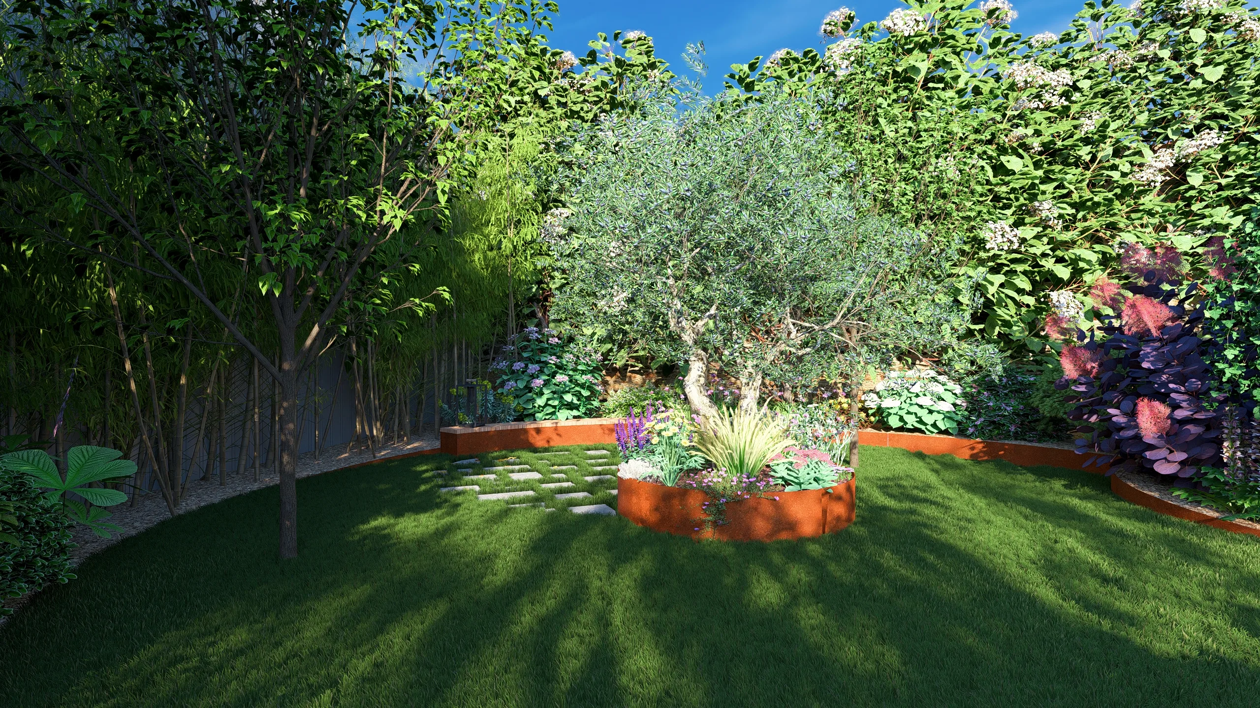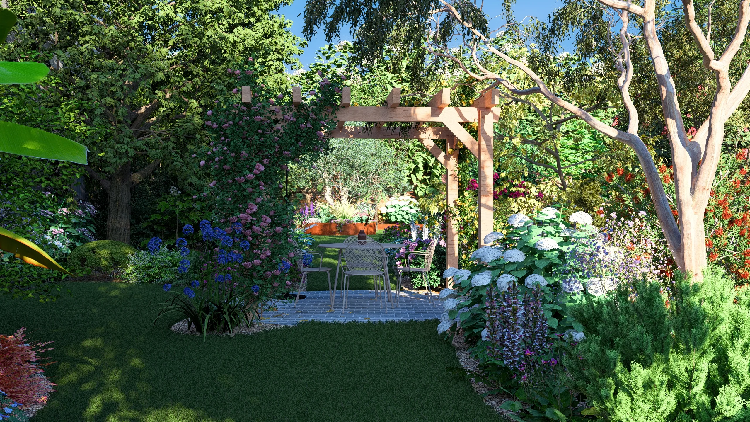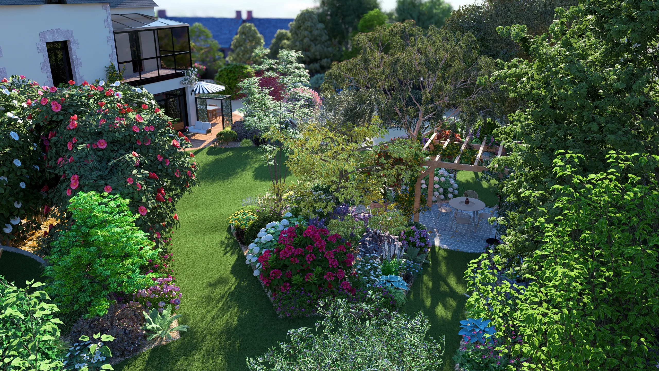 un espace potager redéfini, une zone de détente, une pergola installée à l’écart, ou encore un cercle engazonné qui structure une clairière au cœur du jardin. Autant de lieux pensés pour être habités, au fil des saisons et des moments de la journée.
