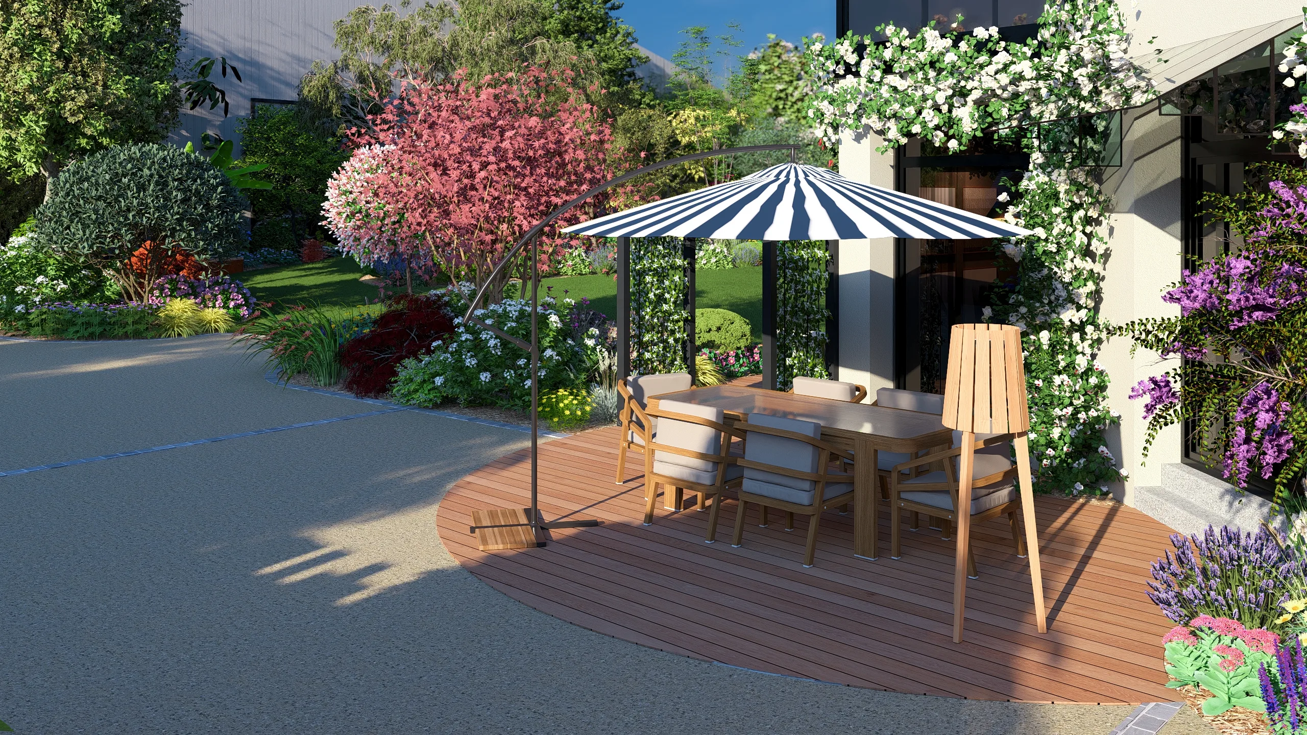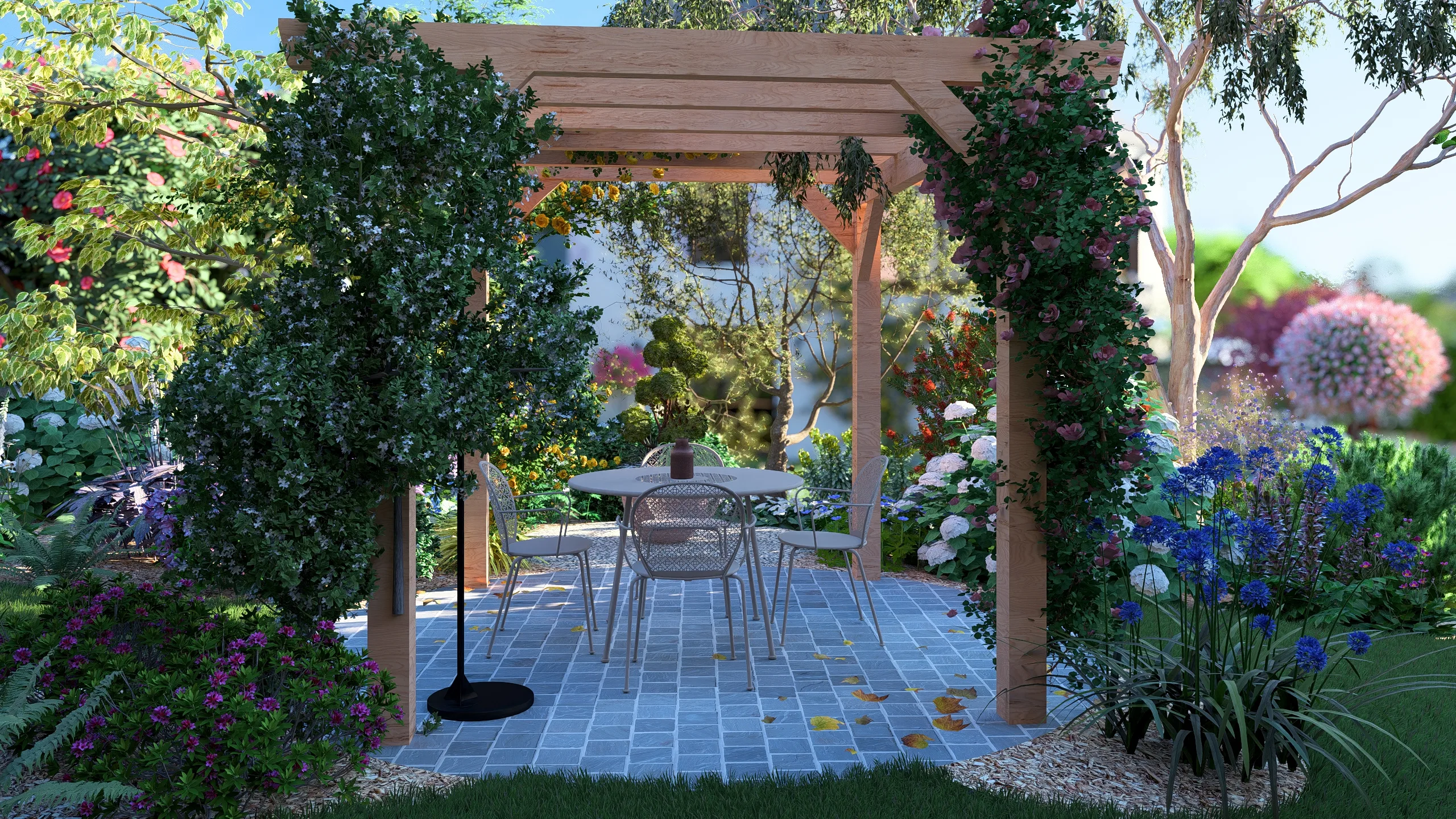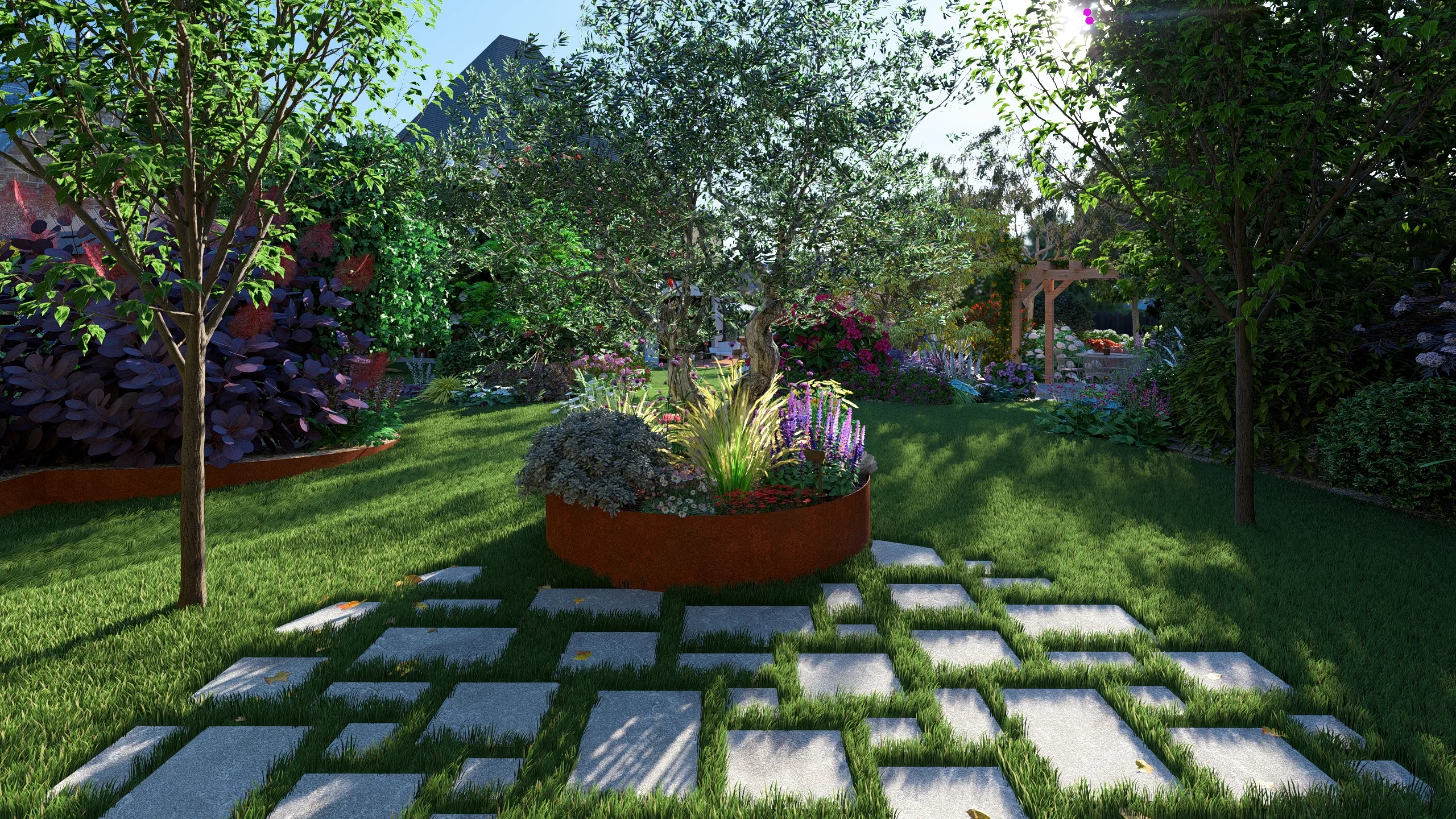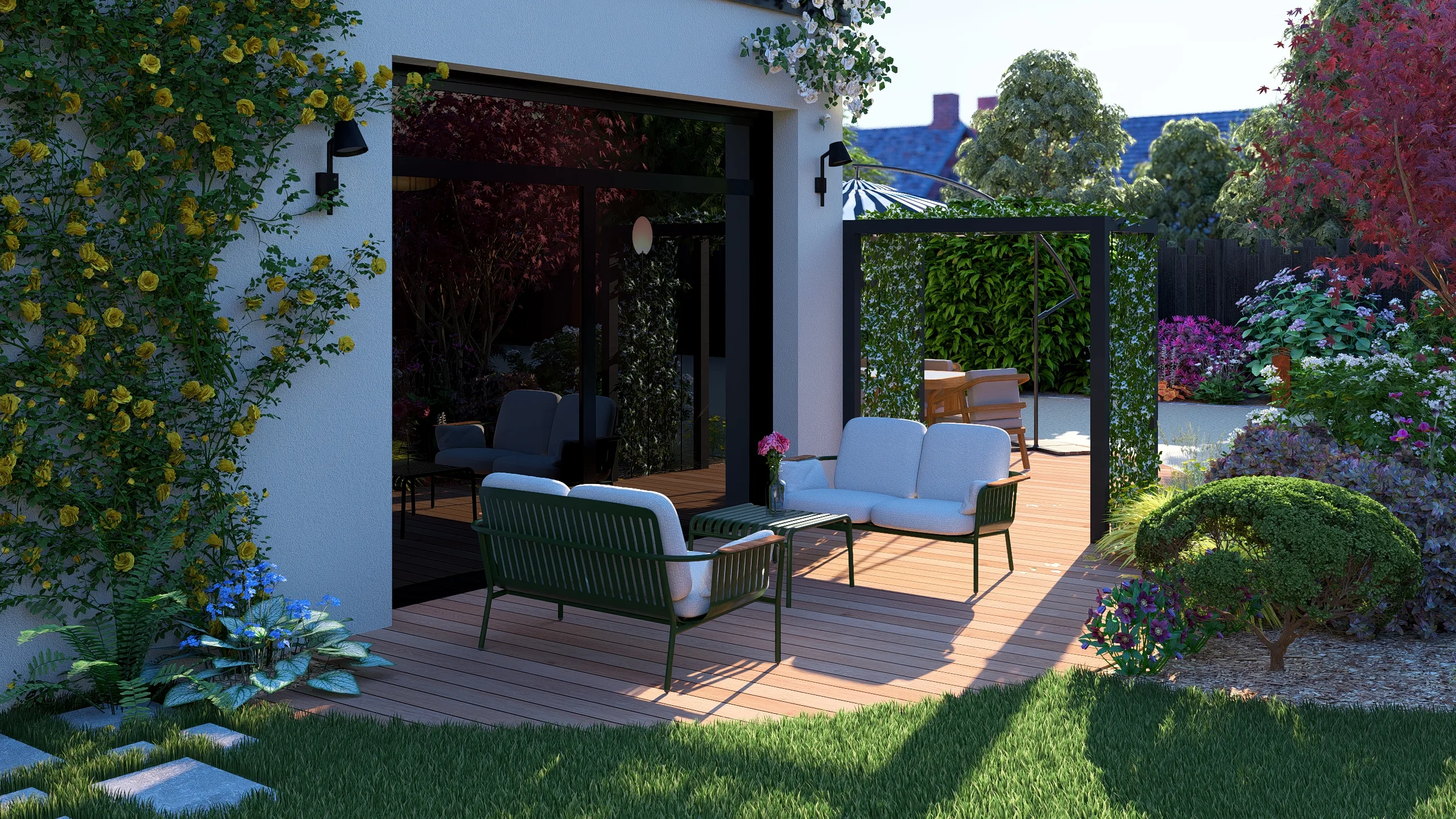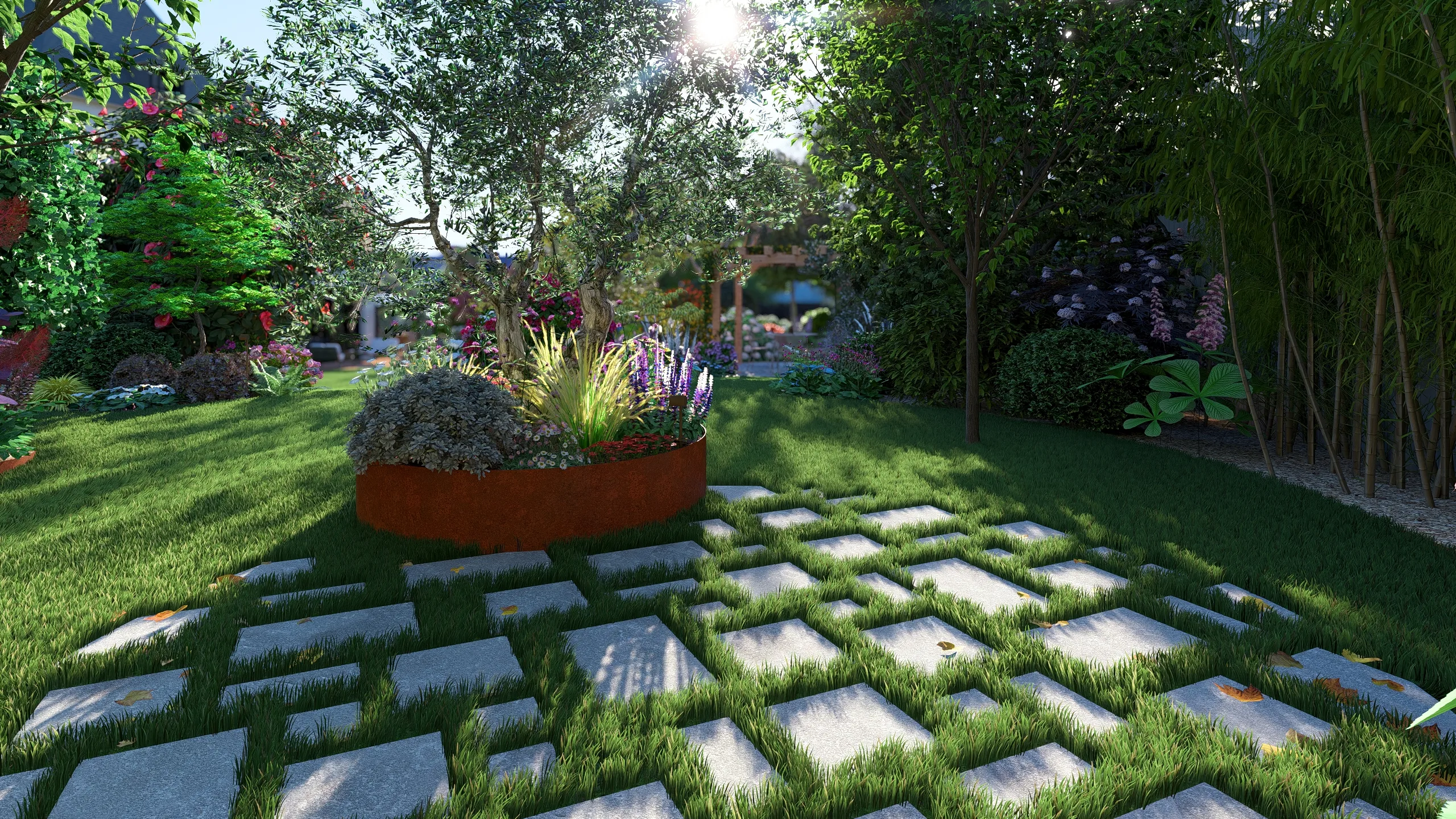 un espace potager redéfini, une zone de détente, une pergola installée à l’écart, ou encore un cercle engazonné qui structure une clairière au cœur du jardin. Autant de lieux pensés pour être habités, au fil des saisons et des moments de la journée.