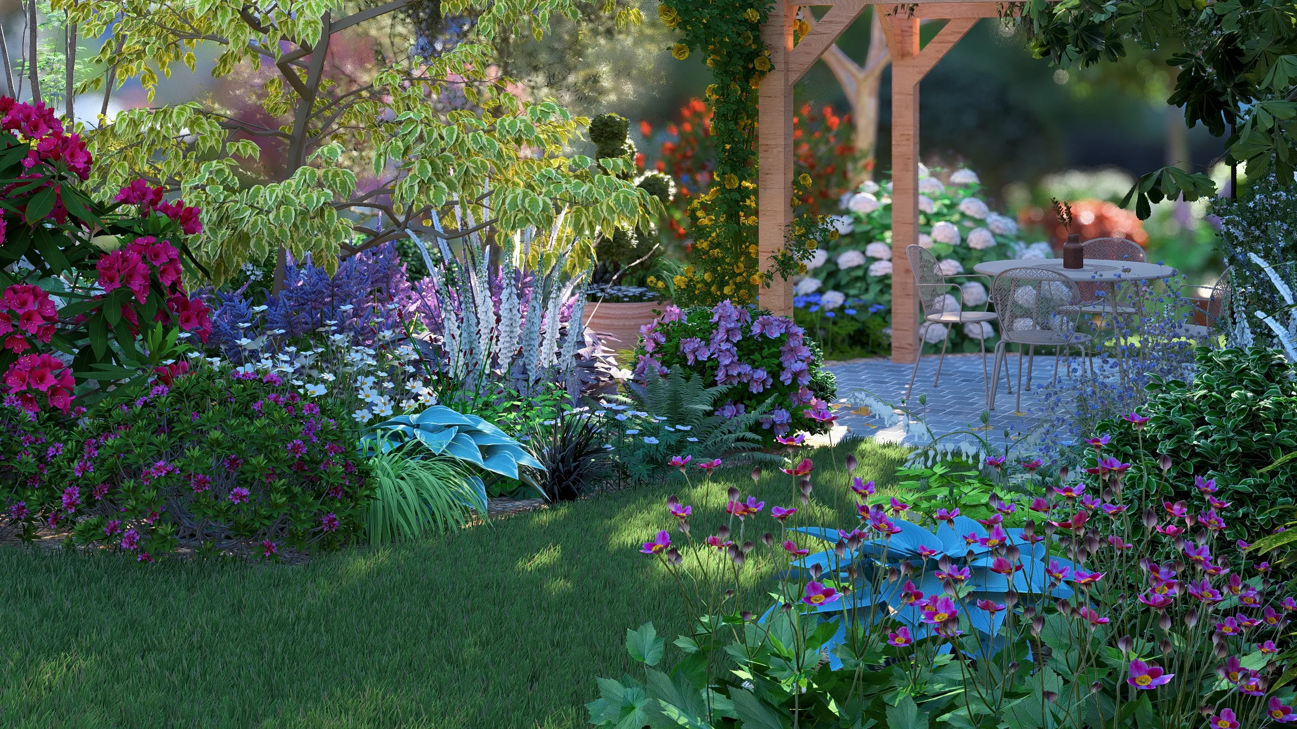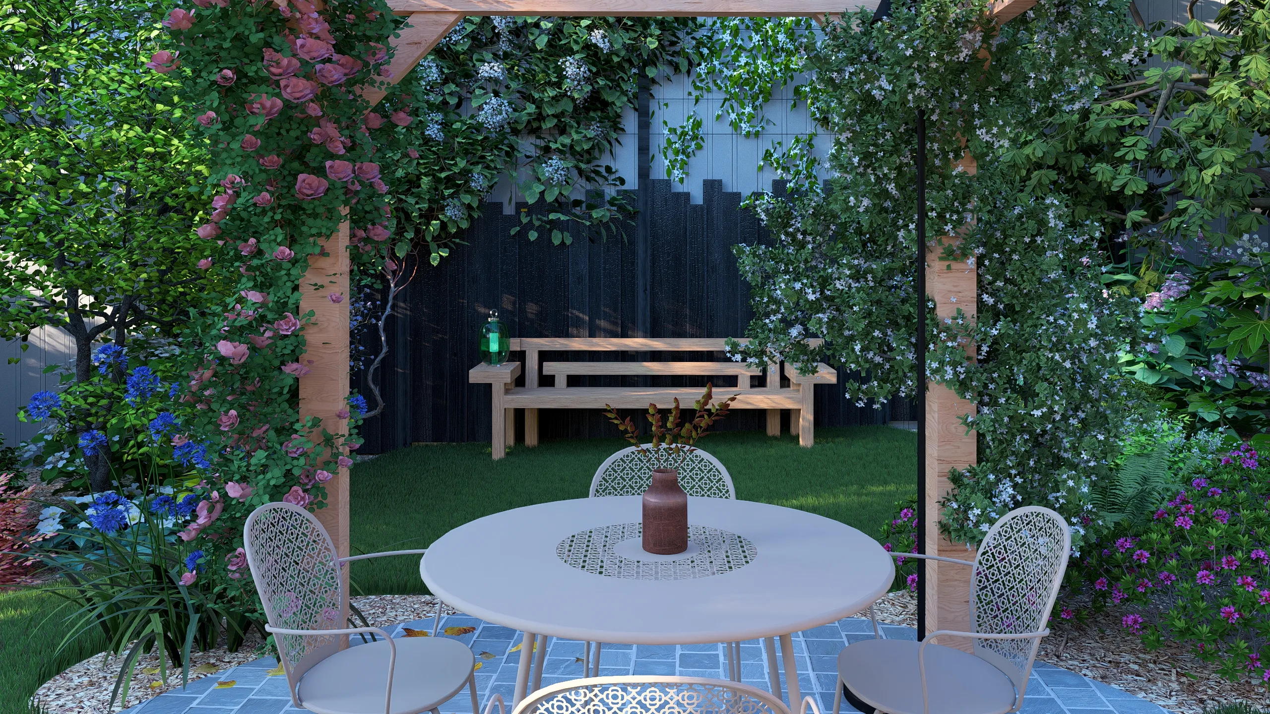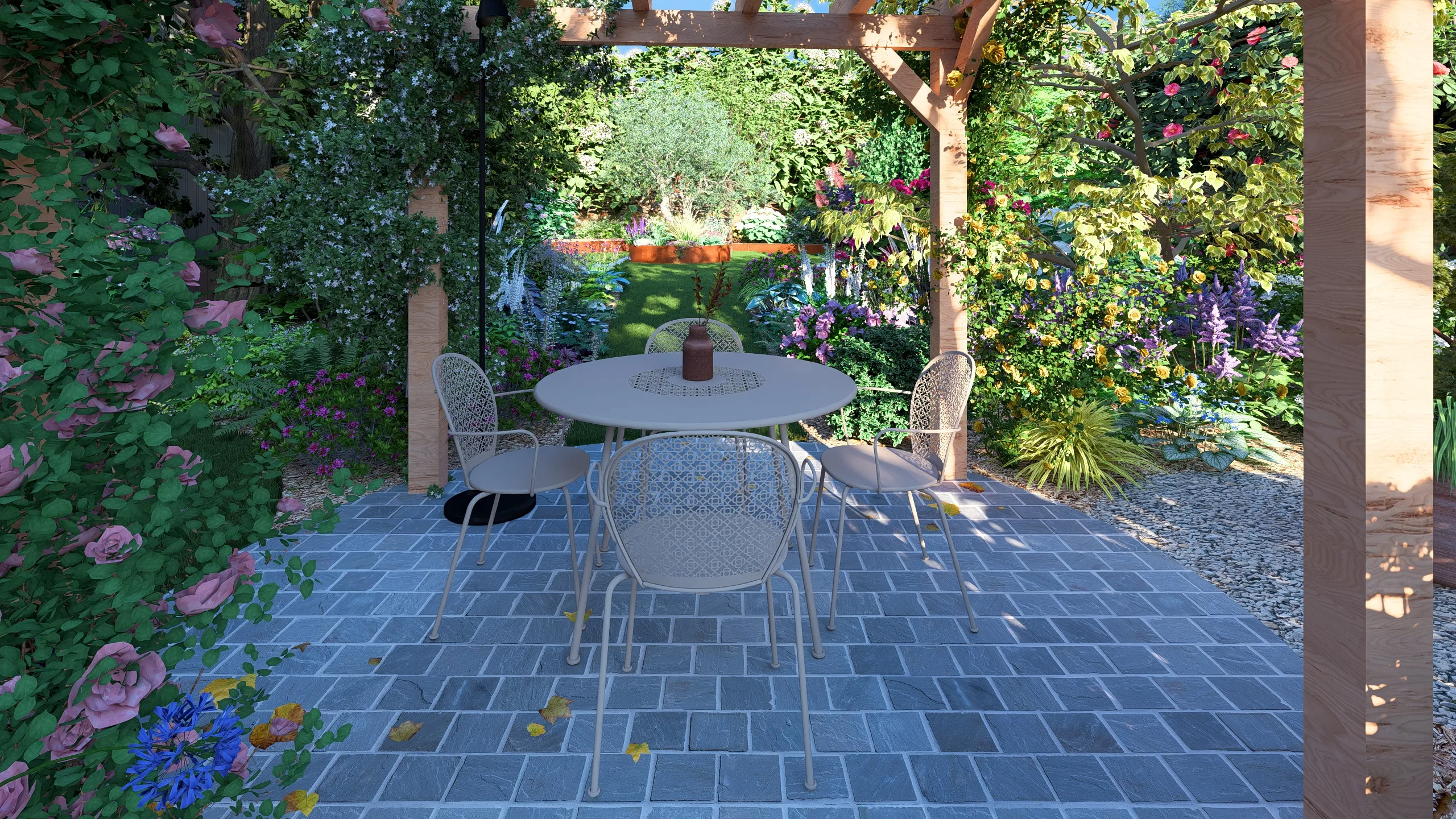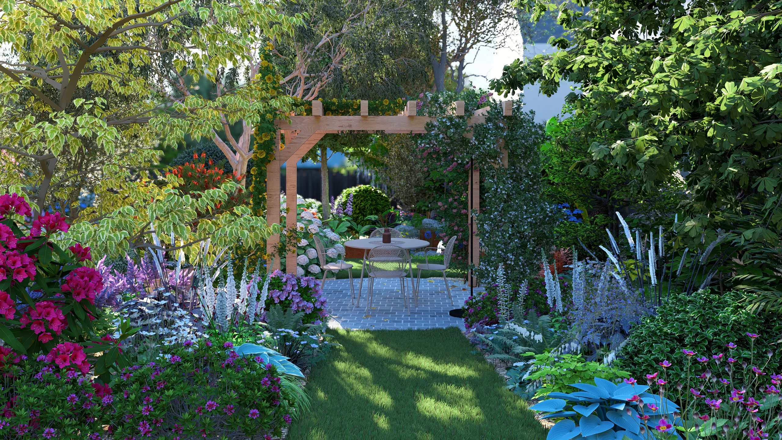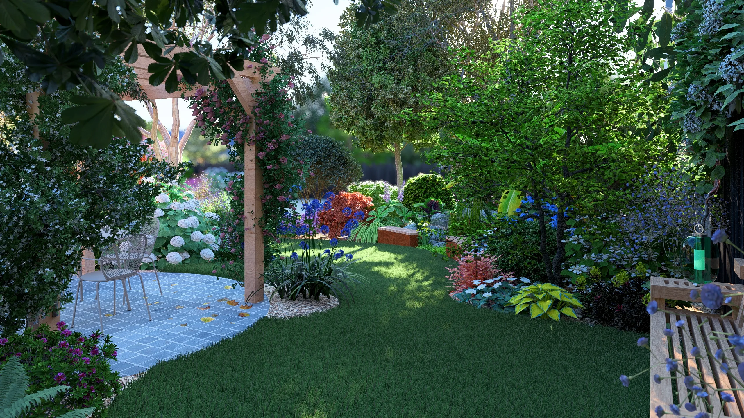 un espace potager redéfini, une zone de détente, une pergola installée à l’écart, ou encore un cercle engazonné qui structure une clairière au cœur du jardin. Autant de lieux pensés pour être habités, au fil des saisons et des moments de la journée.