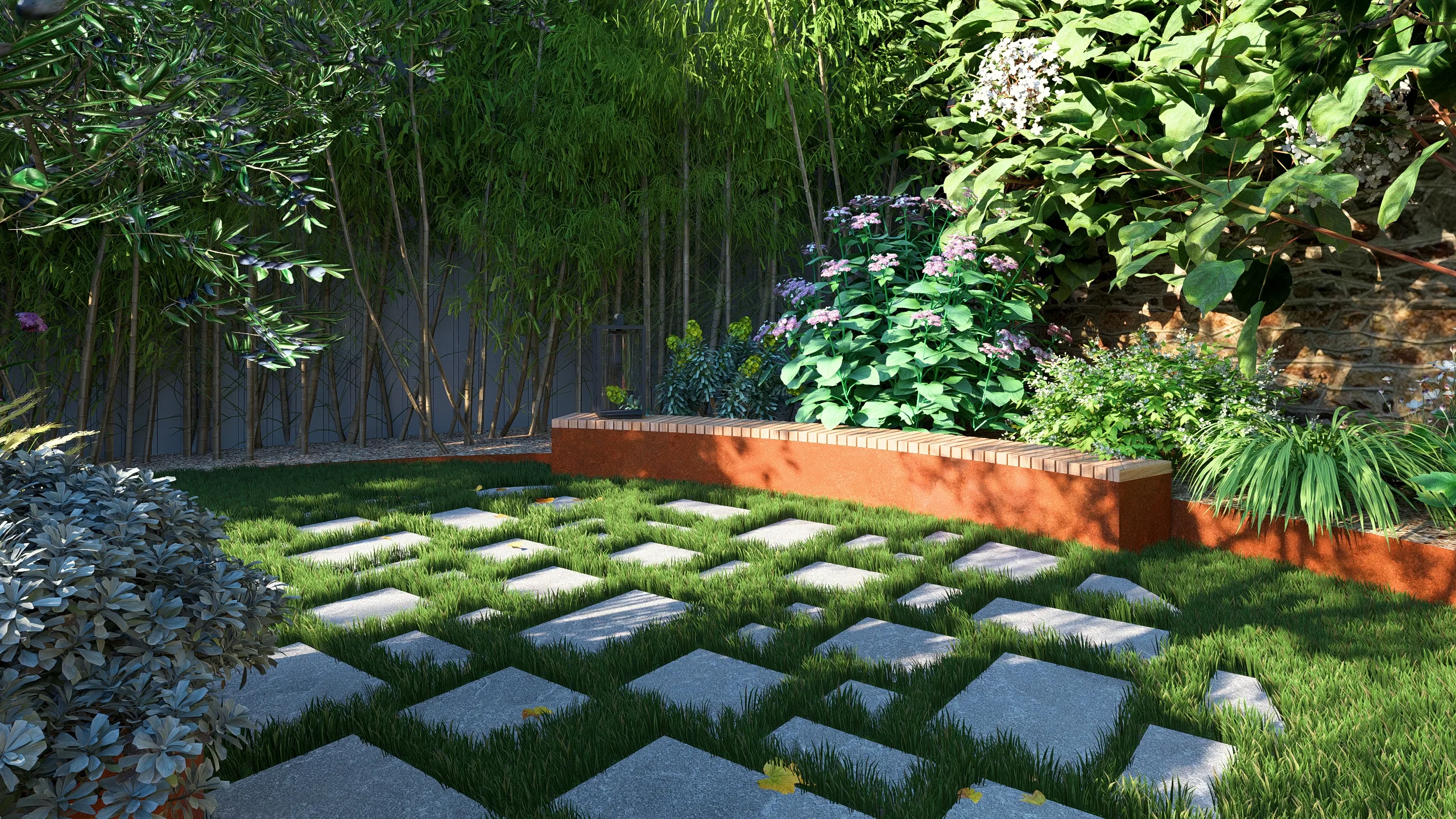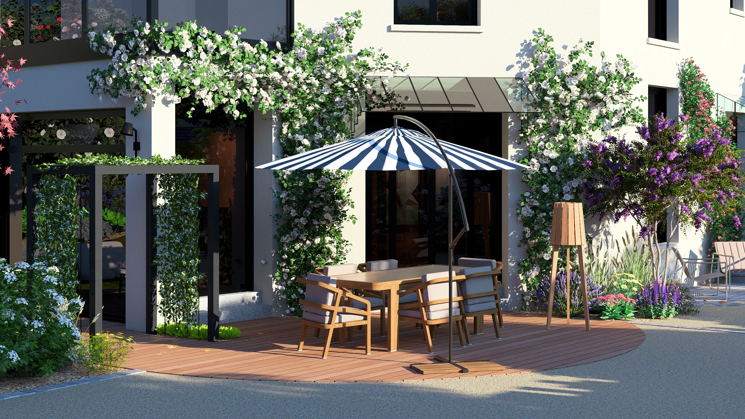 Un jardin de ville devenu un véritable écrin de fraîcheur, où le végétal, l’eau et les matières créent une atmosphère à part, en retrait du rythme urbain.