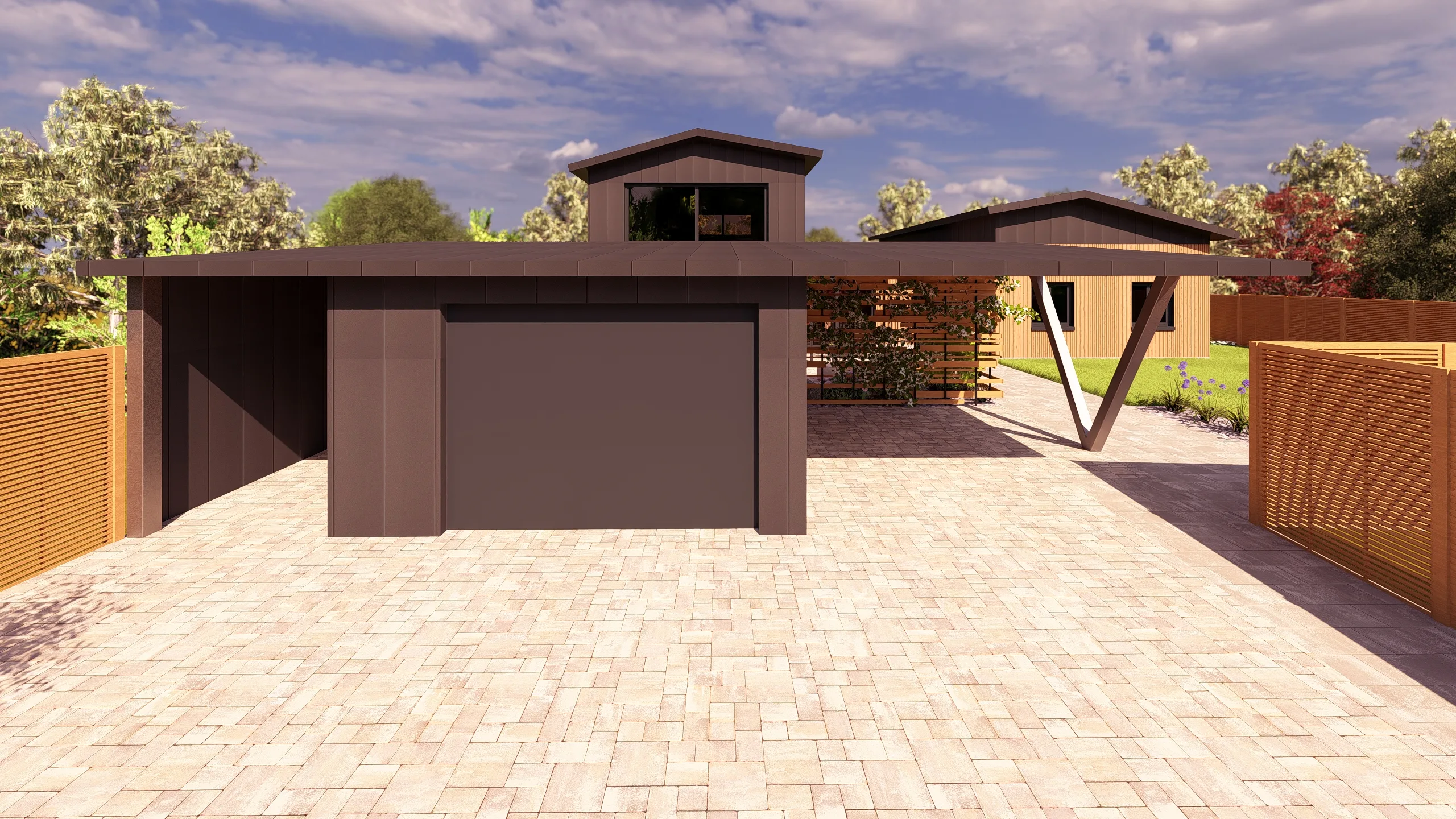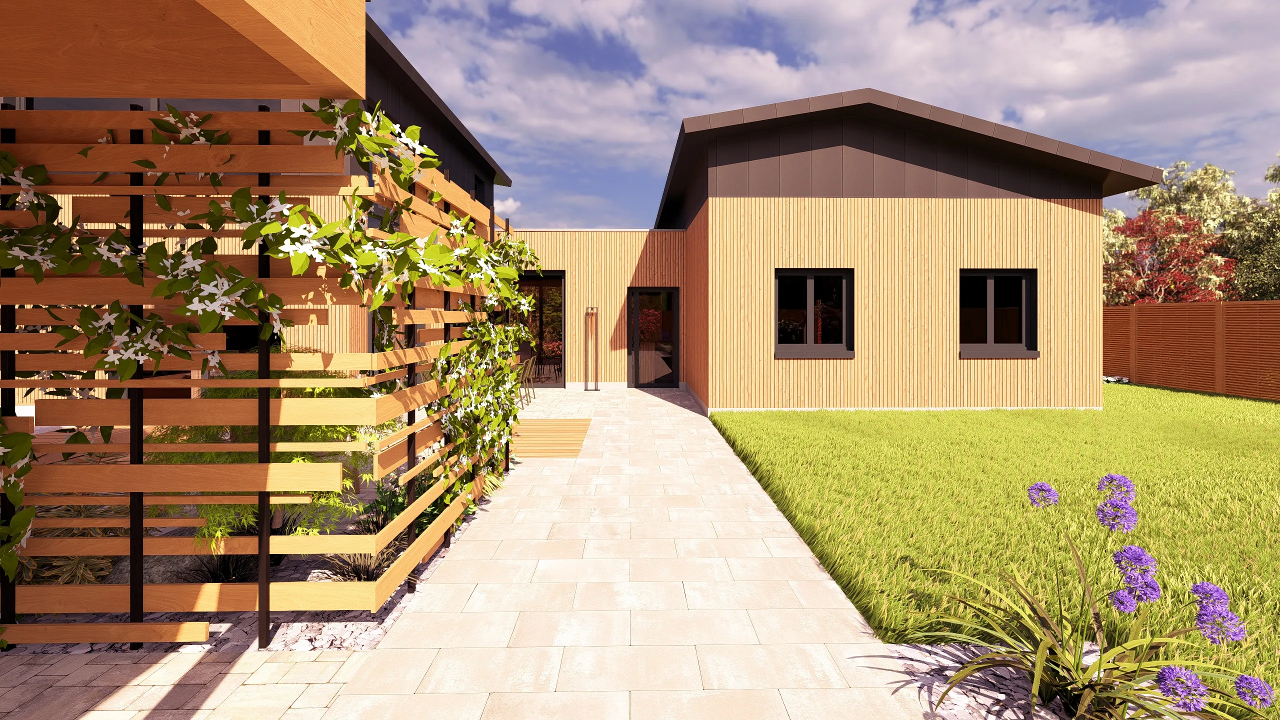 L’objectif : repenser entièrement les extérieurs, de l’entrée à l’arrière du jardin, en proposant un aménagement cohérent, durable et adapté aux usages du quotidien, grâce à une modélisation 3D permettant d’anticiper les volumes, les matériaux et les circulations.