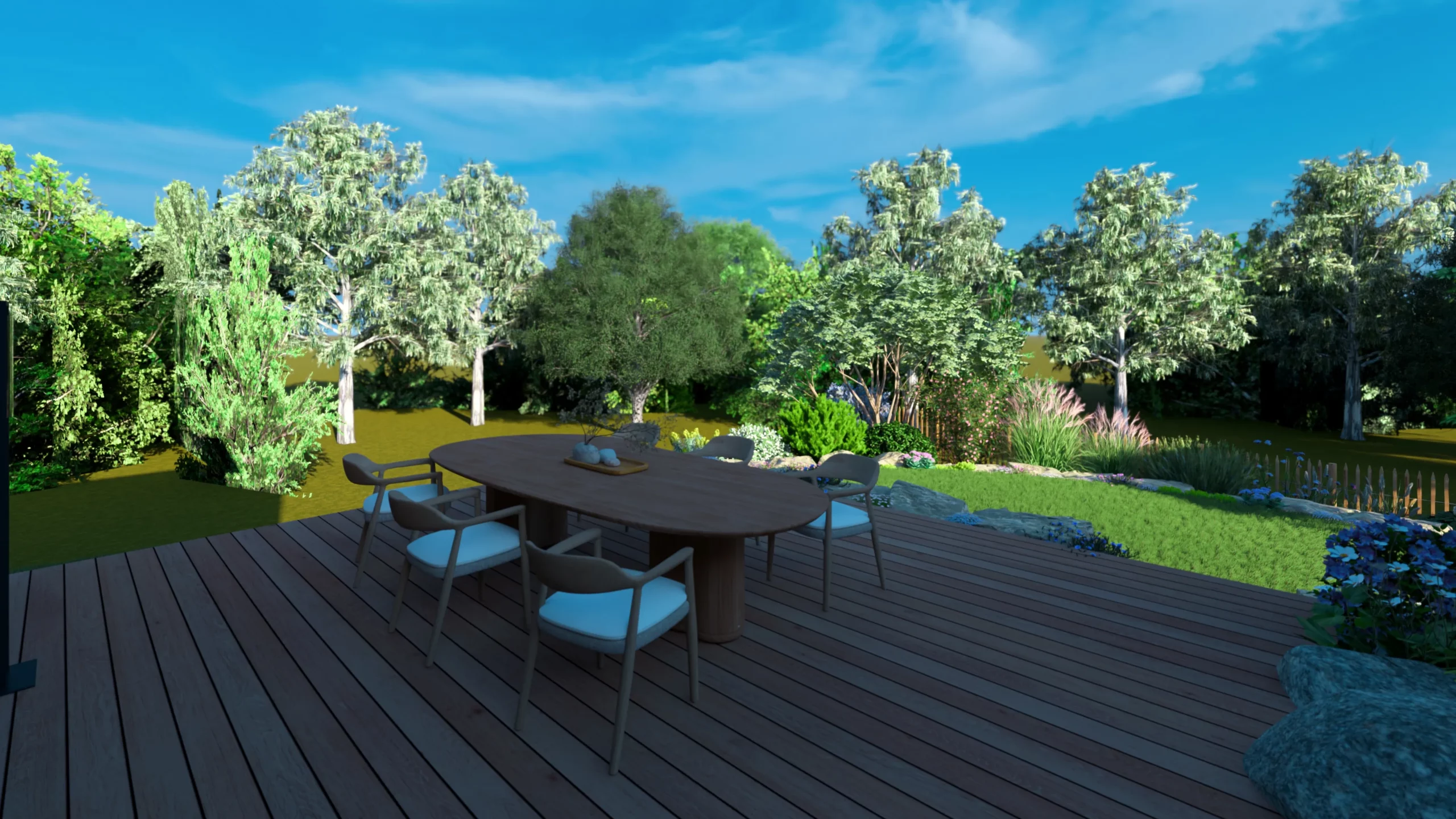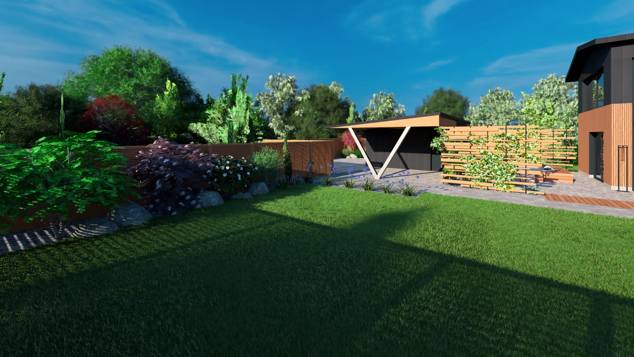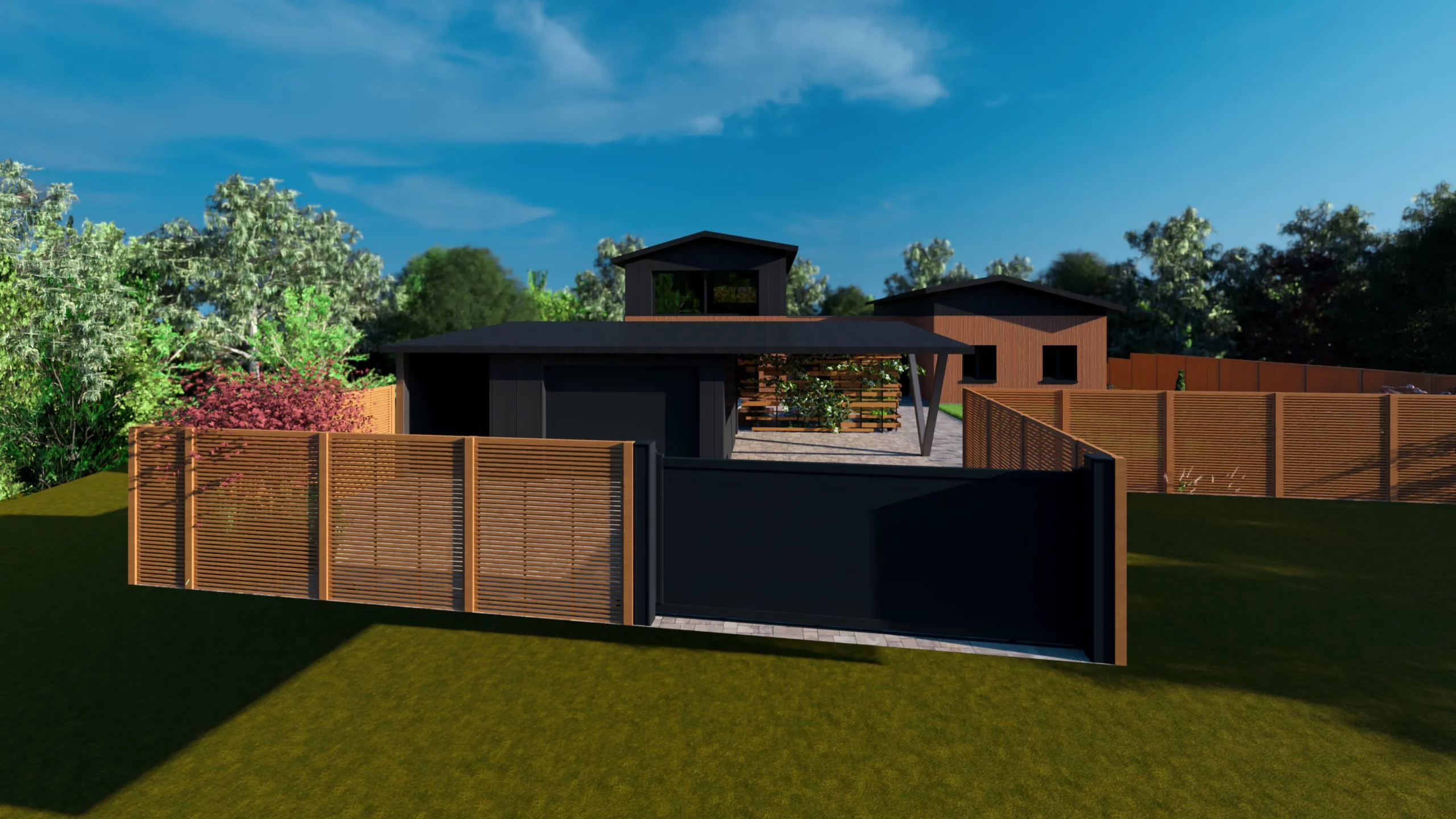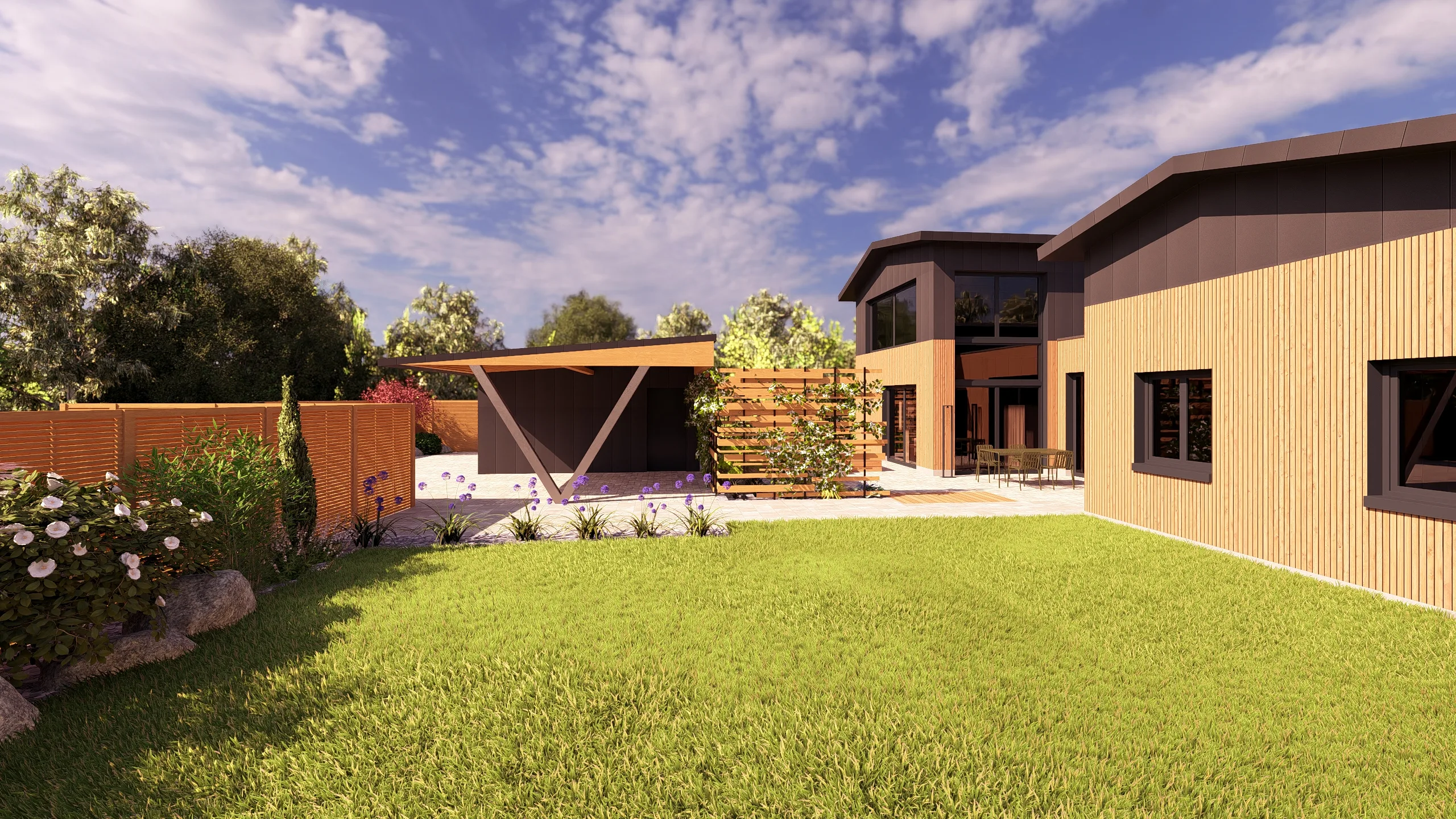 Ce jardin incarne cette démarche : un jardin contemporain, fonctionnel et équilibré, où la conception et la visualisation 3D permettent de donner une direction claire au projet.