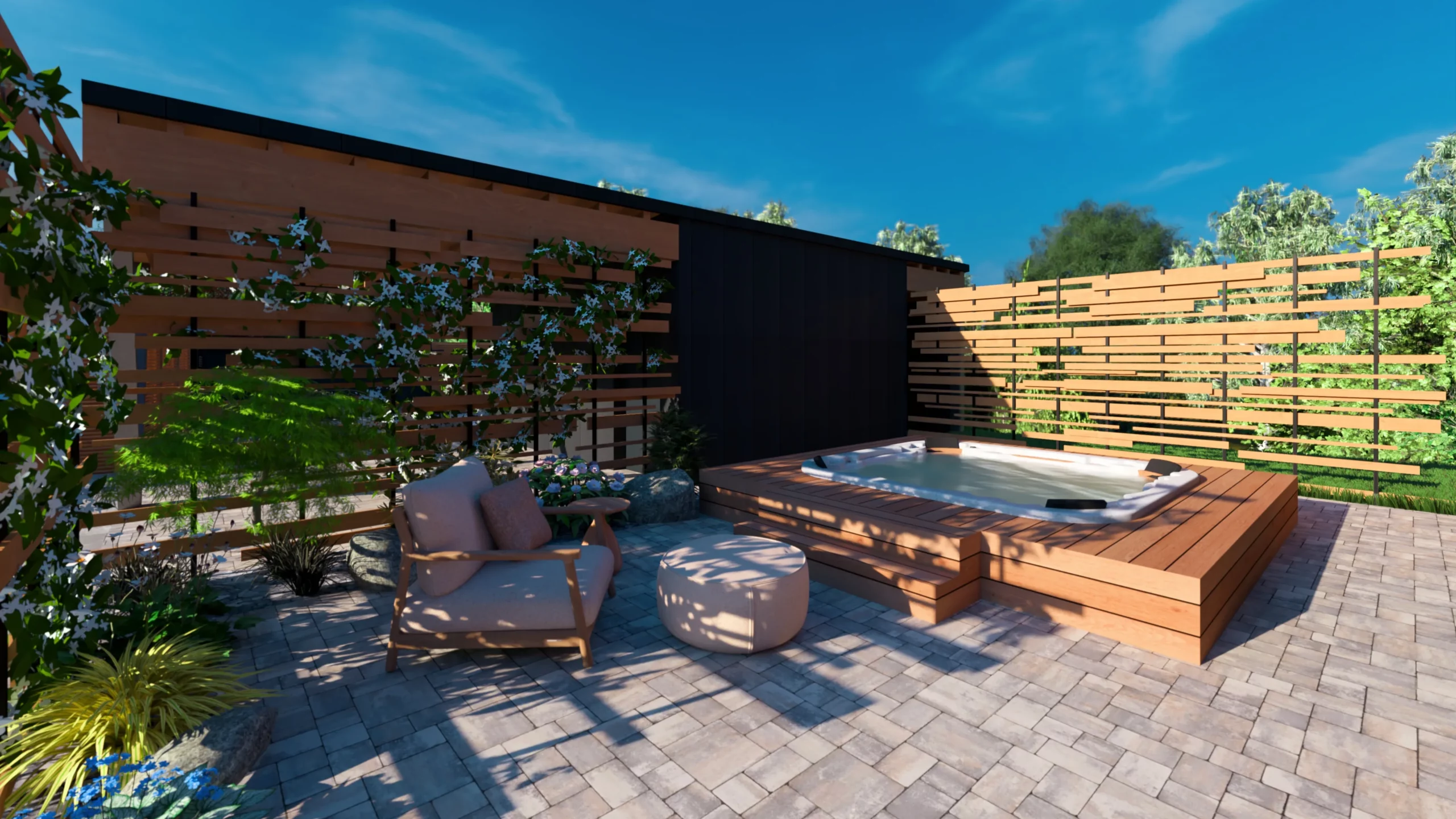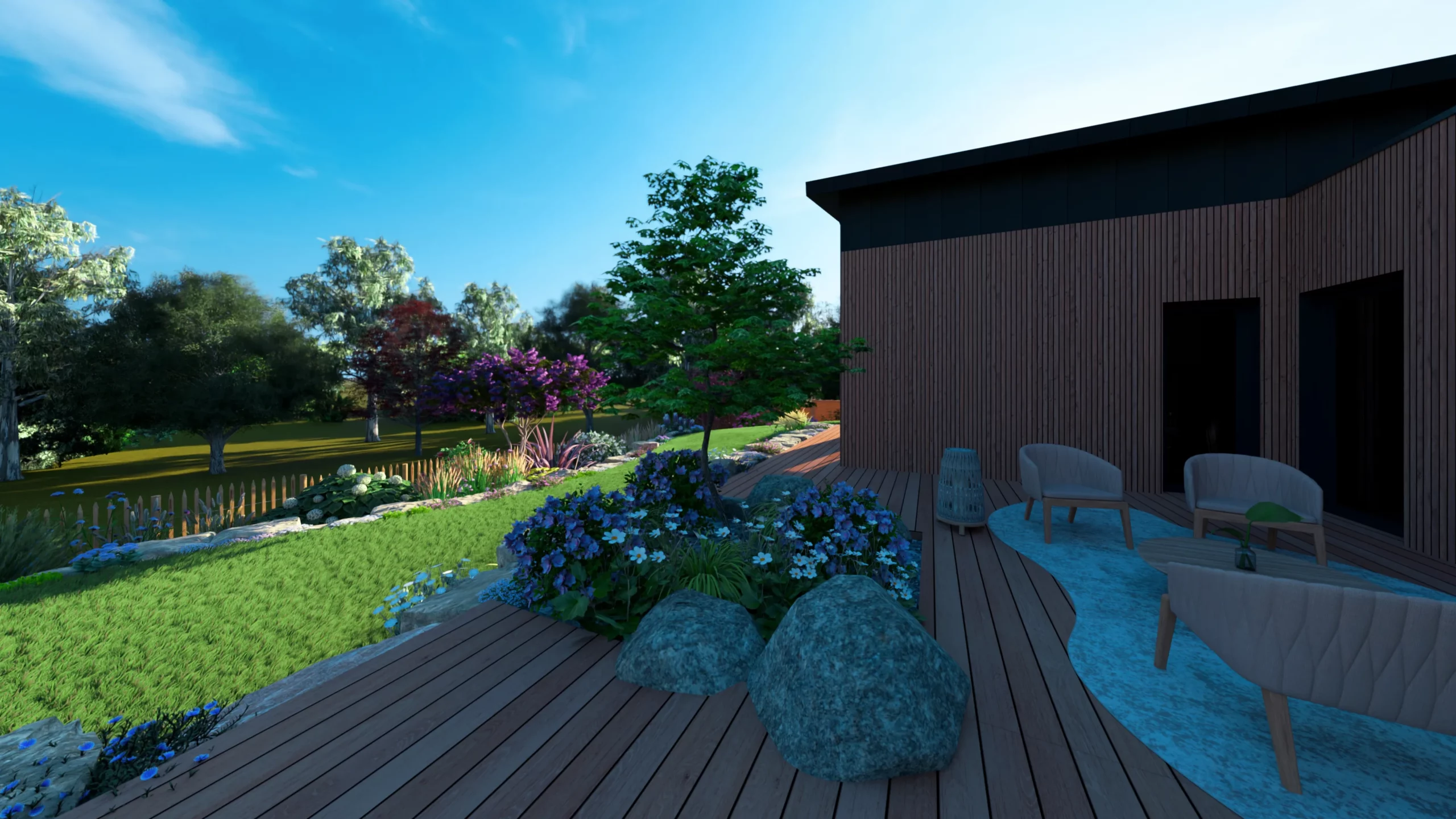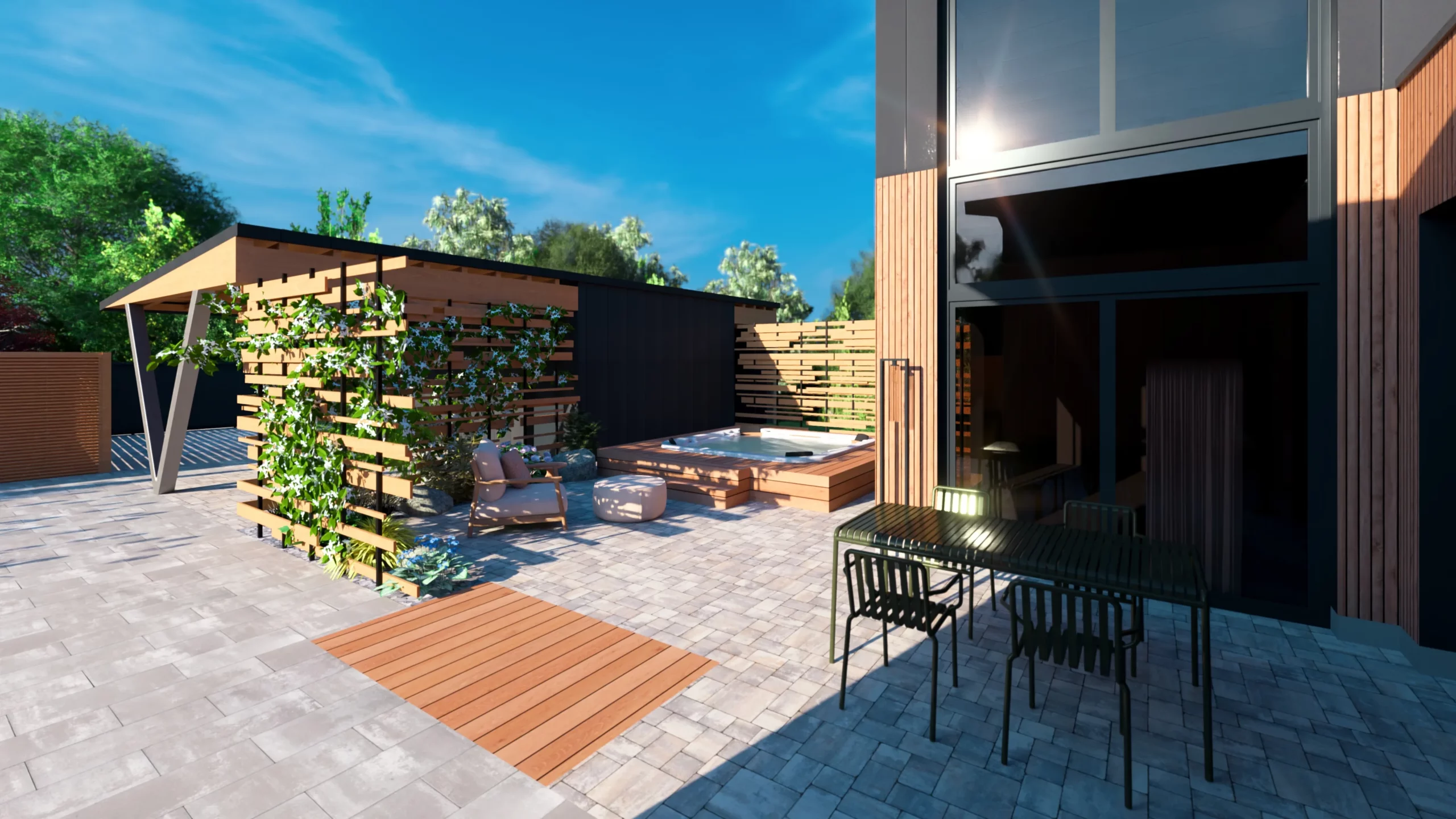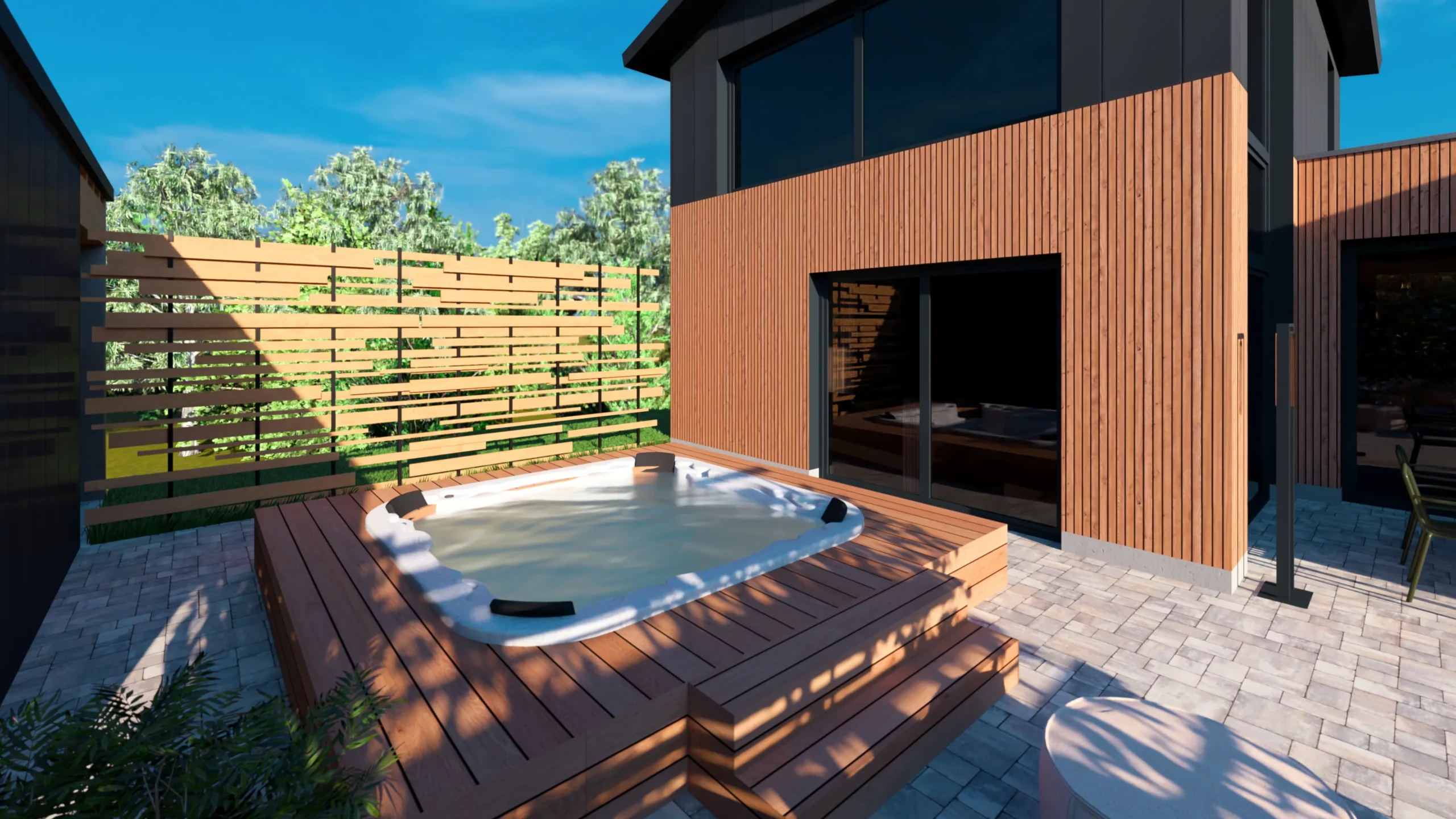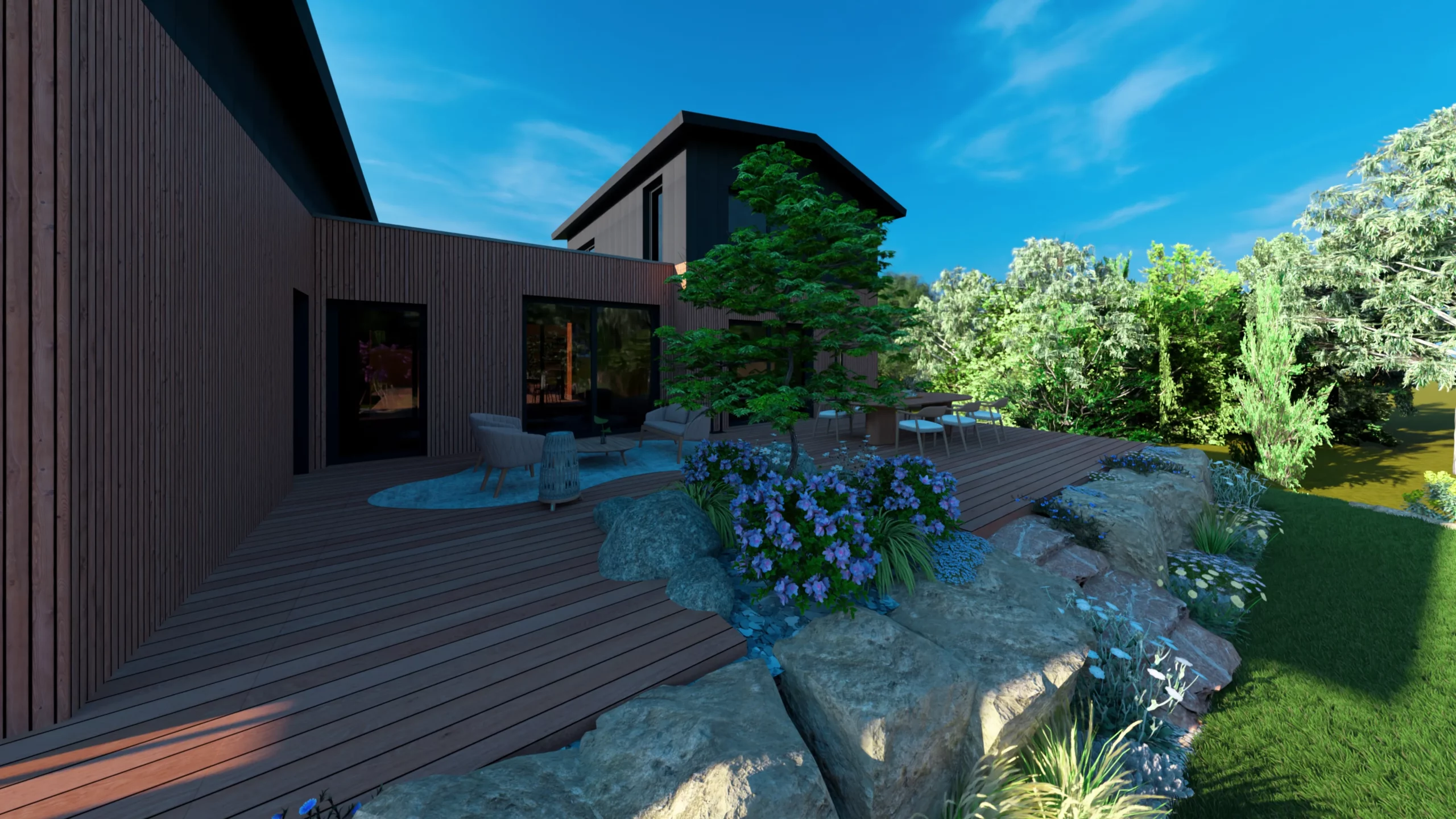 Ce jardin incarne cette démarche : un jardin contemporain, fonctionnel et équilibré, où la conception et la visualisation 3D permettent de donner une direction claire au projet.