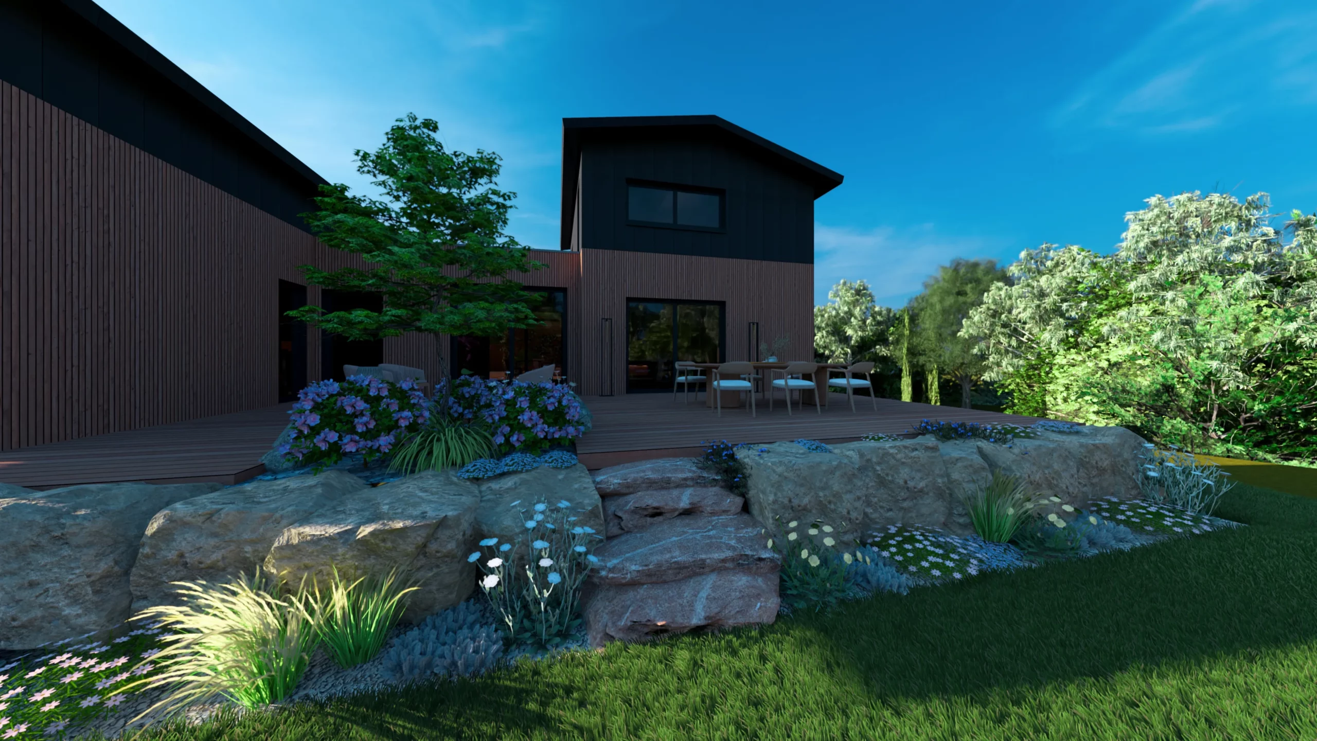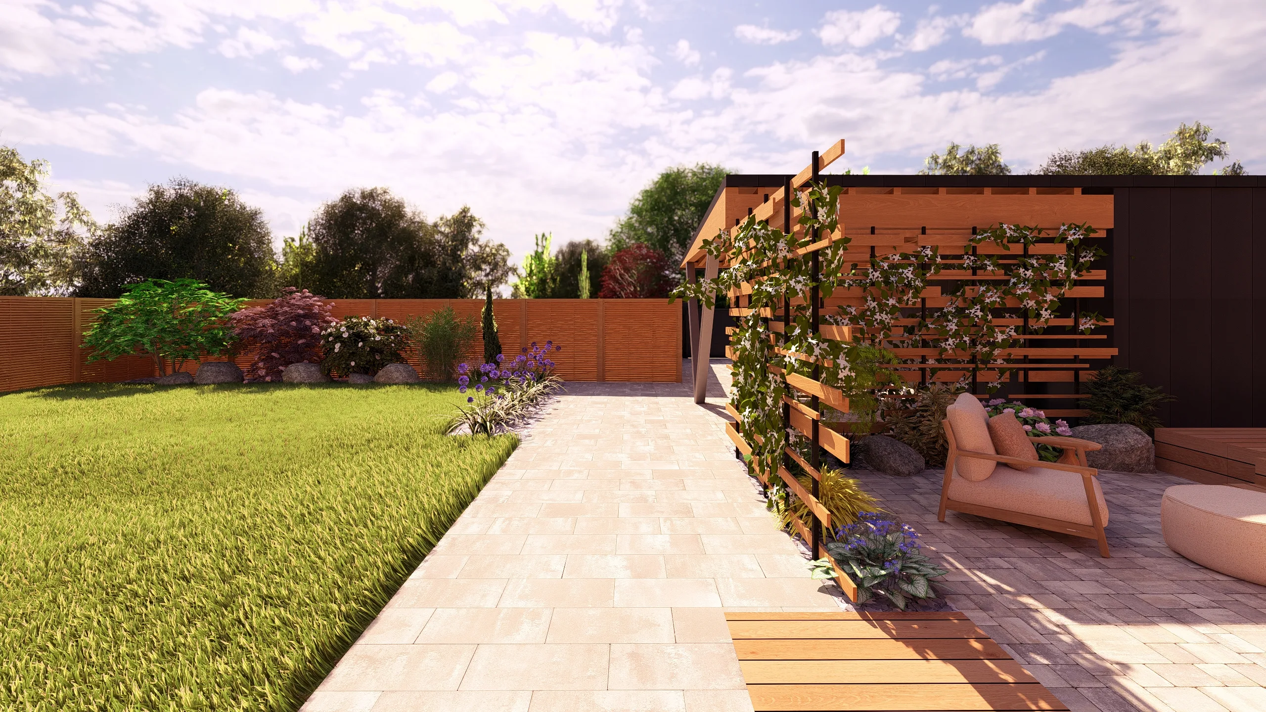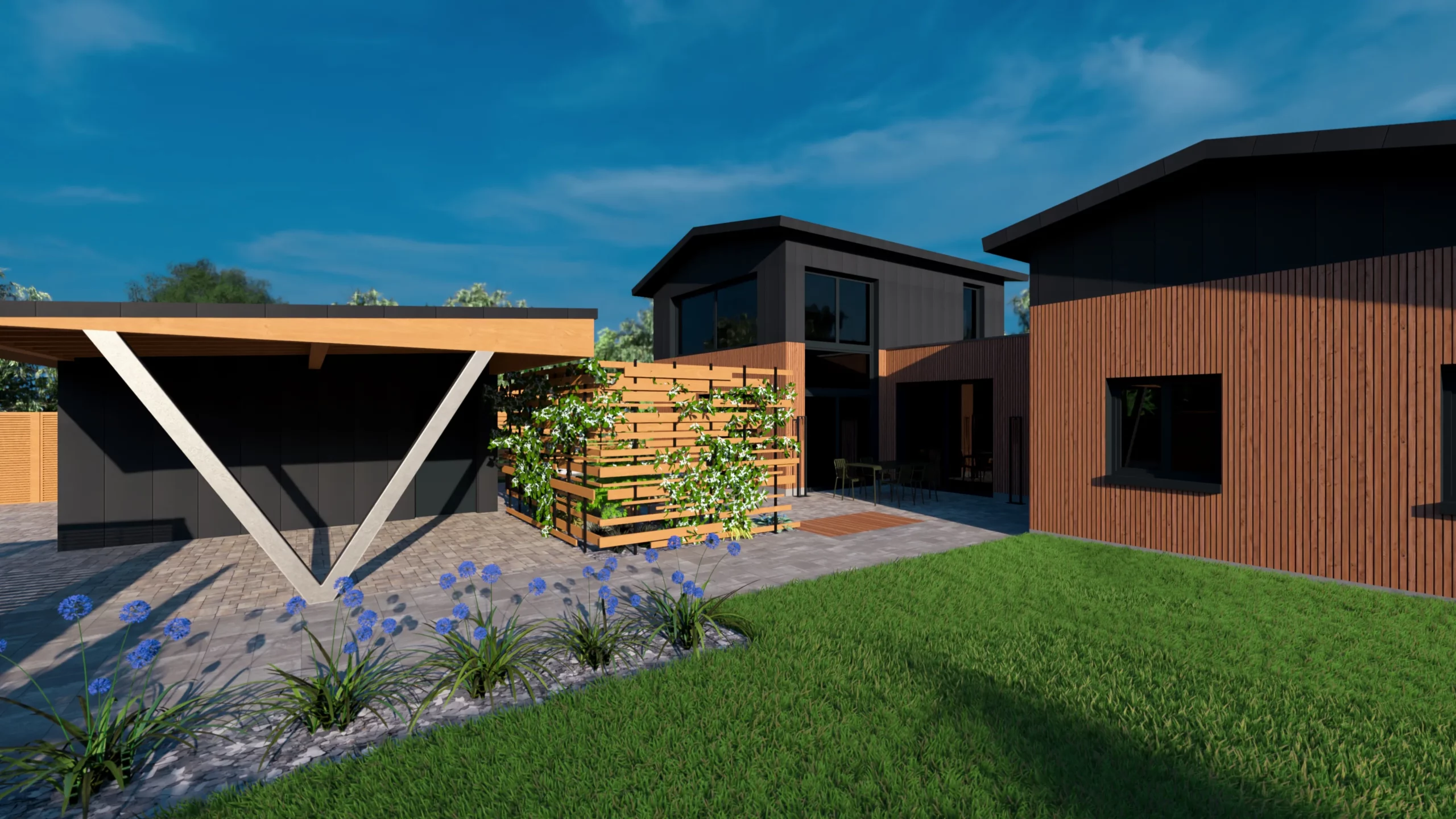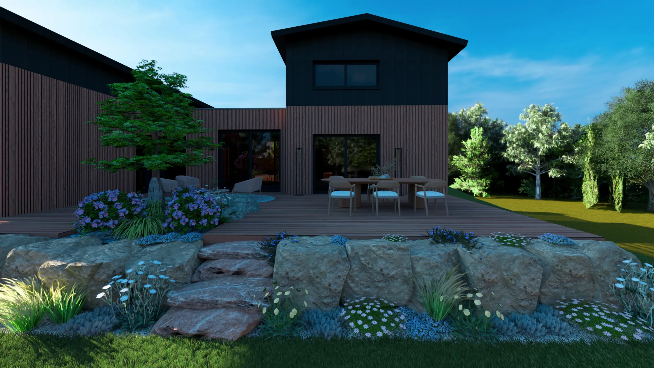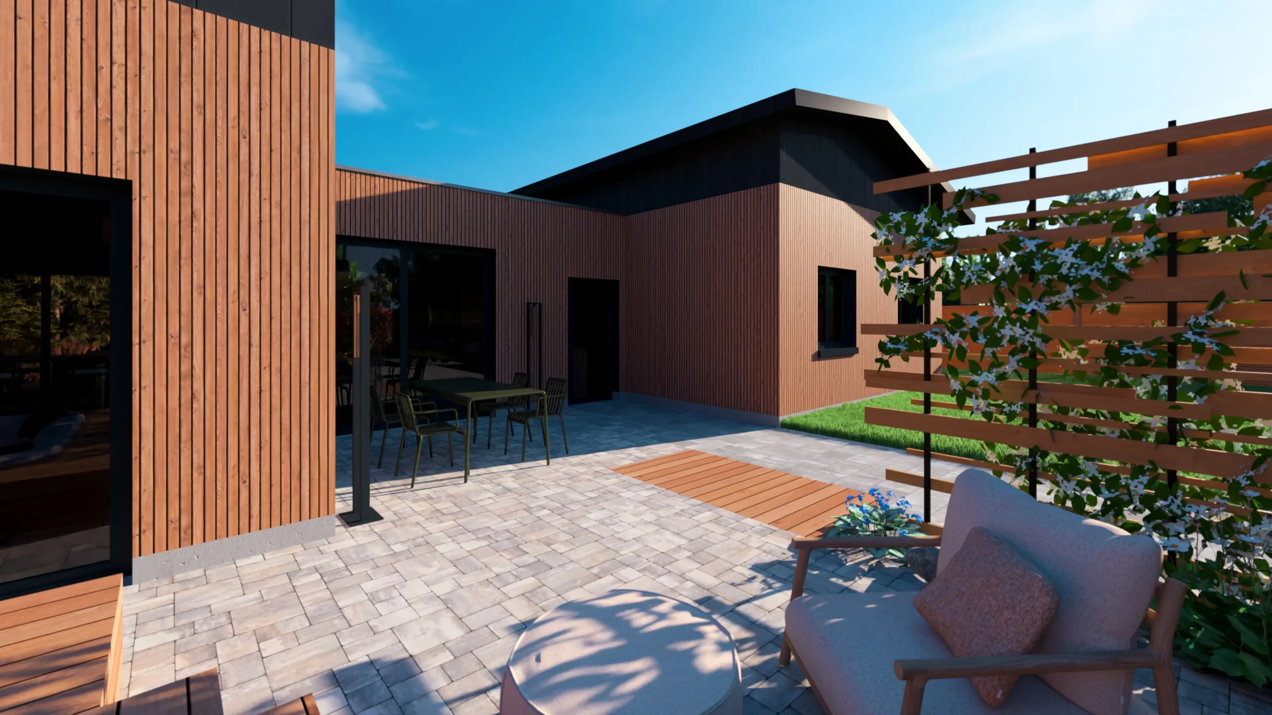 Ce jardin incarne cette démarche : un jardin contemporain, fonctionnel et équilibré, où la conception et la visualisation 3D permettent de donner une direction claire au projet.