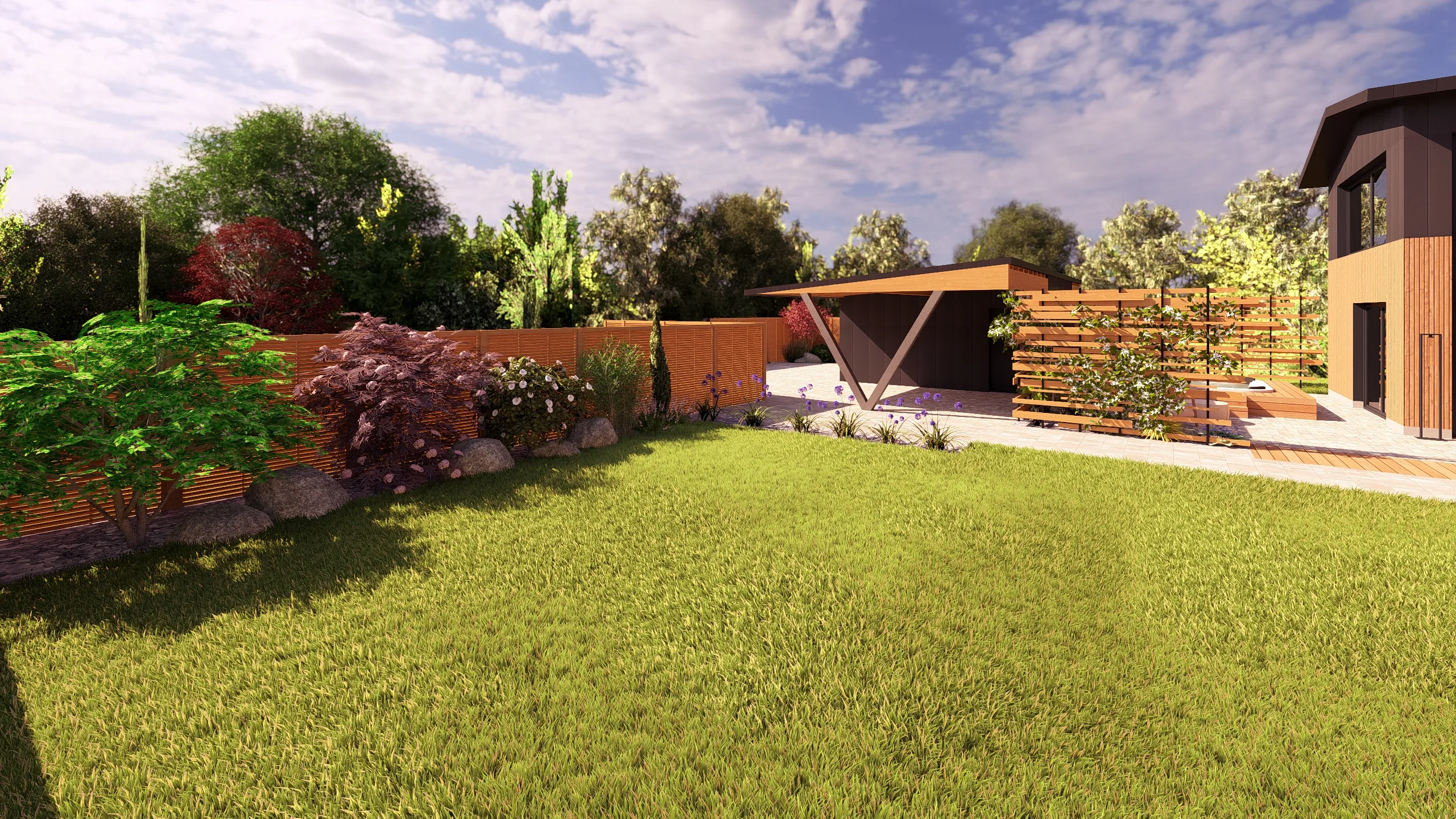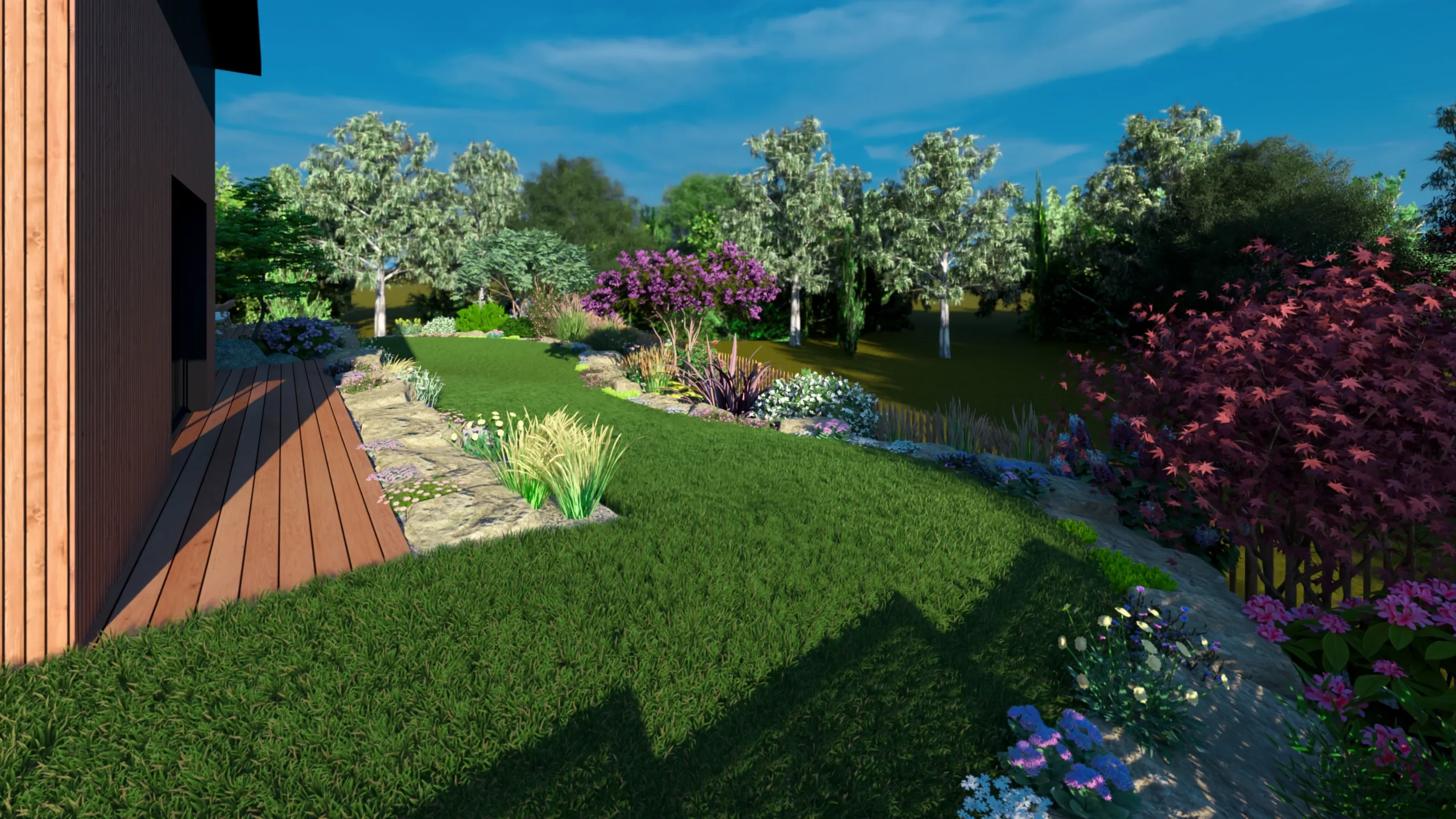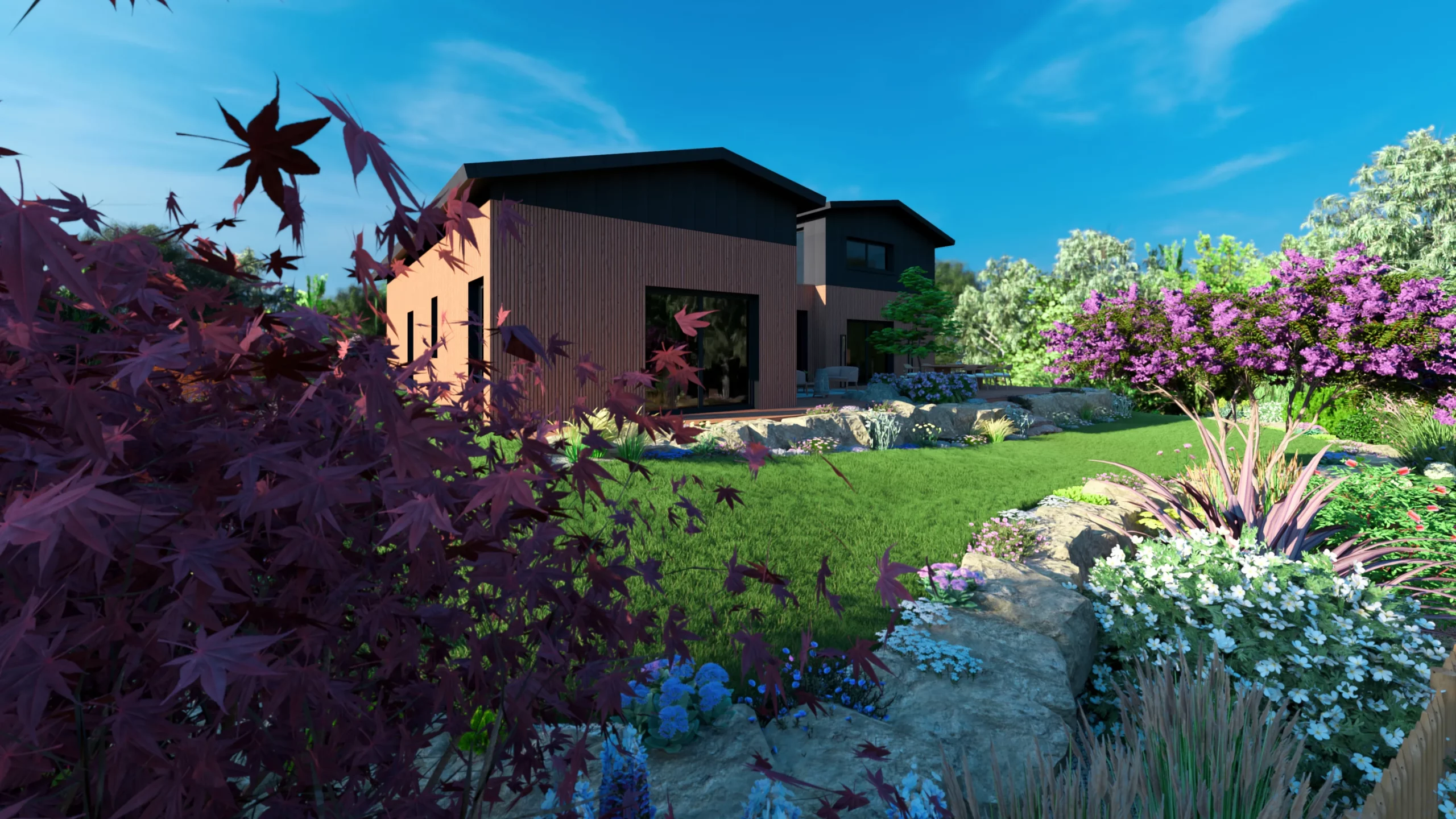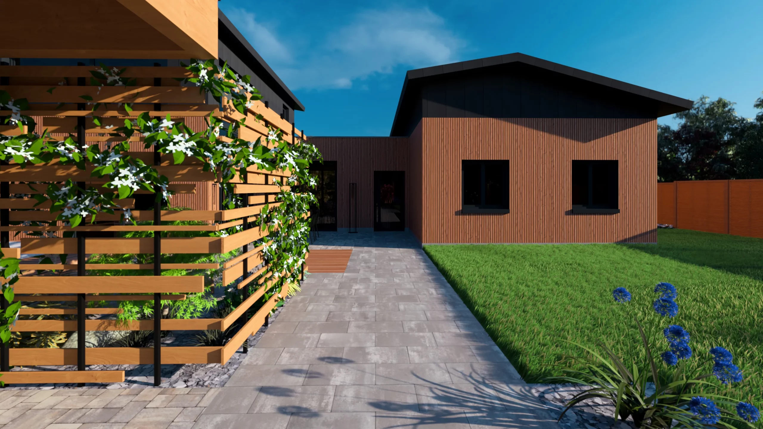 Ce jardin incarne cette démarche : un jardin contemporain, fonctionnel et équilibré, où la conception et la visualisation 3D permettent de donner une direction claire au projet.