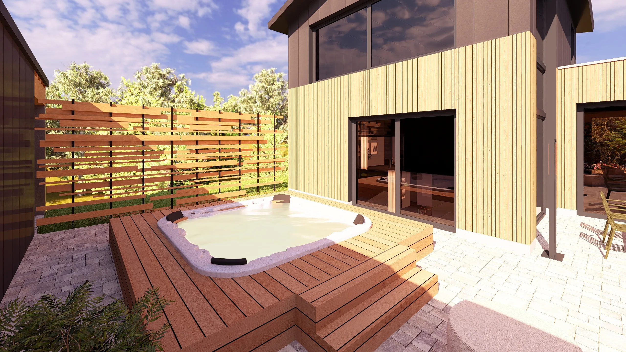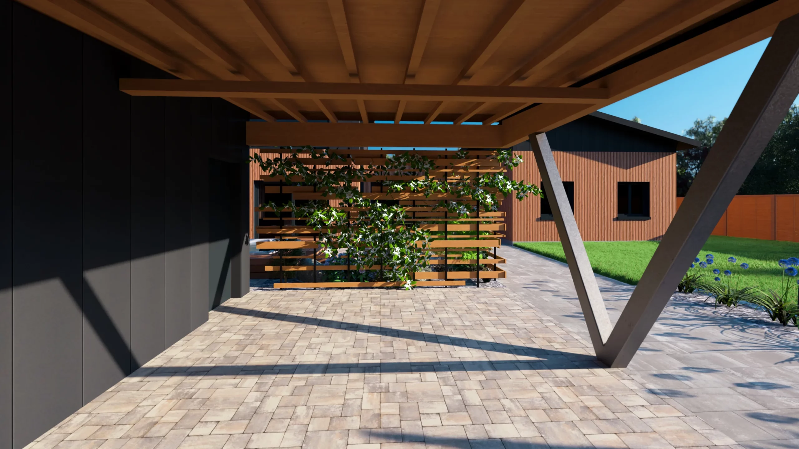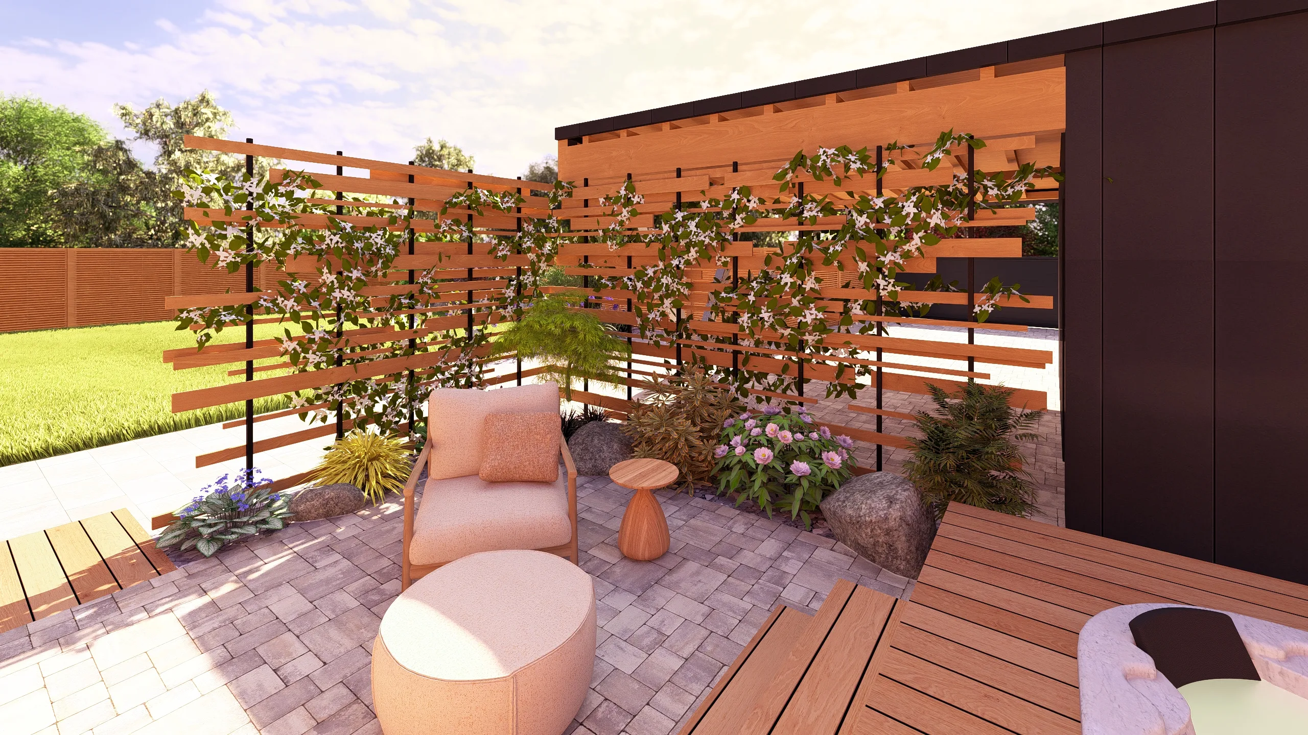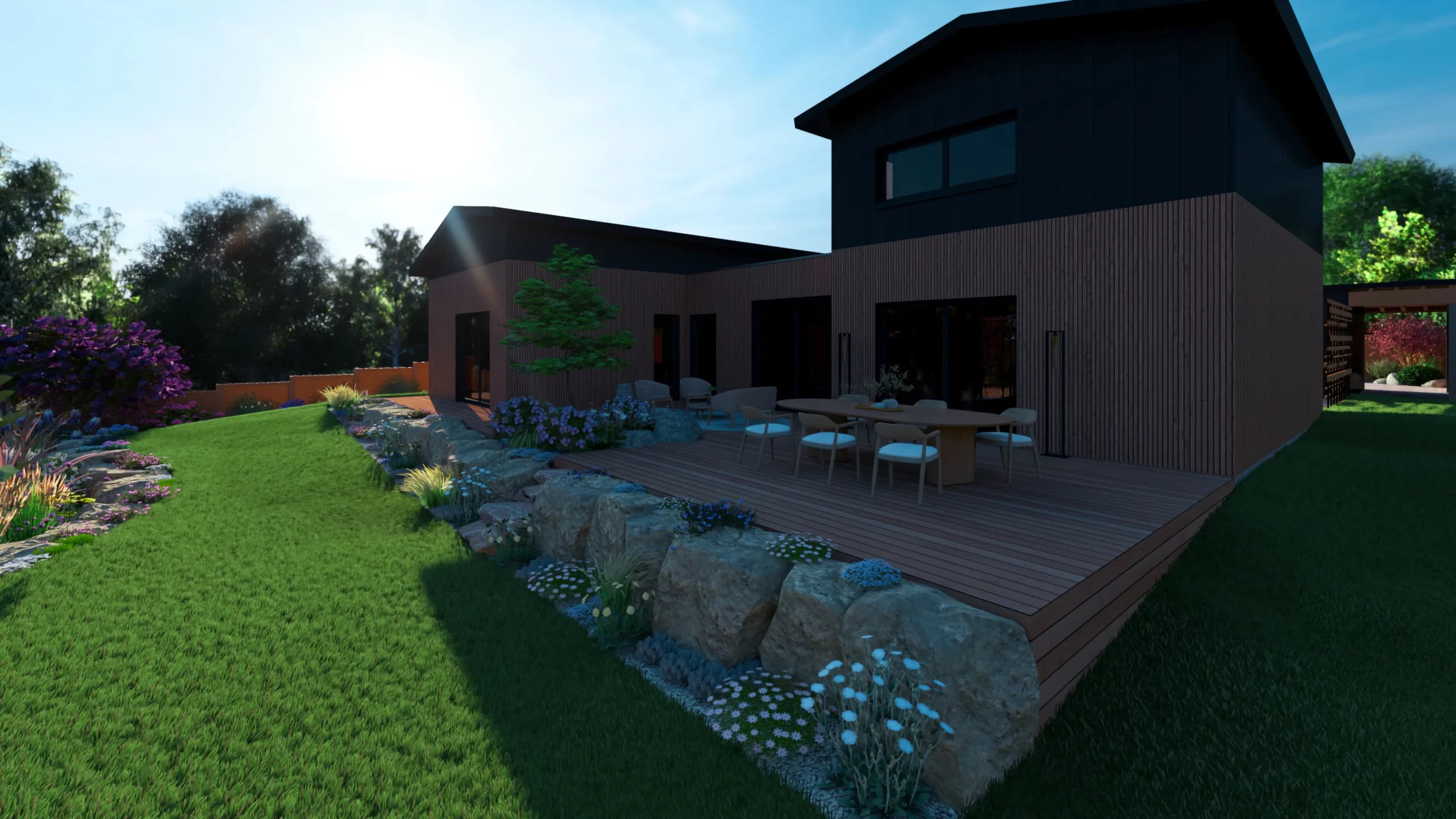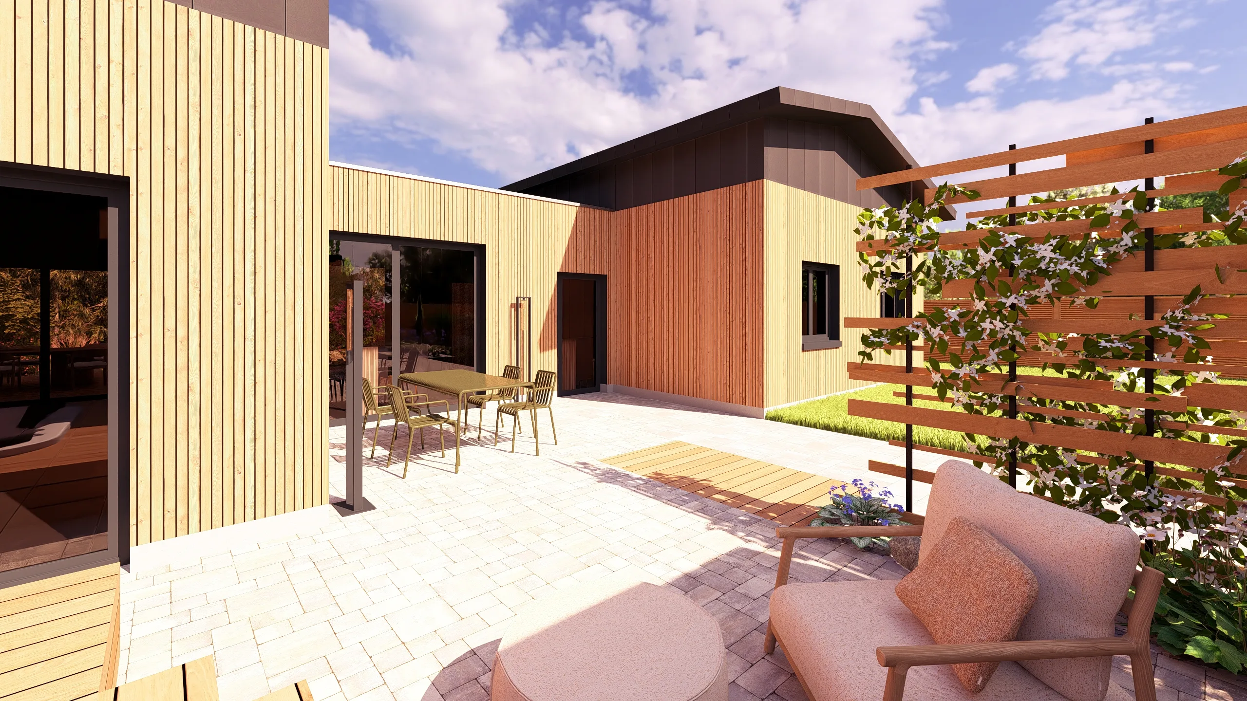 Ce jardin incarne cette démarche : un jardin contemporain, fonctionnel et équilibré, où la conception et la visualisation 3D permettent de donner une direction claire au projet.