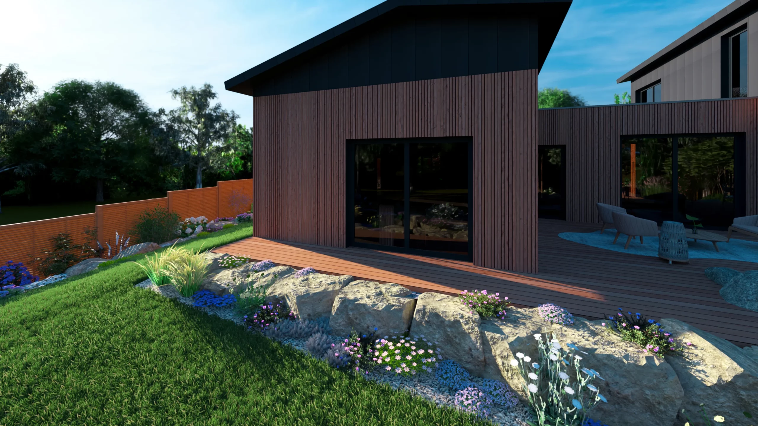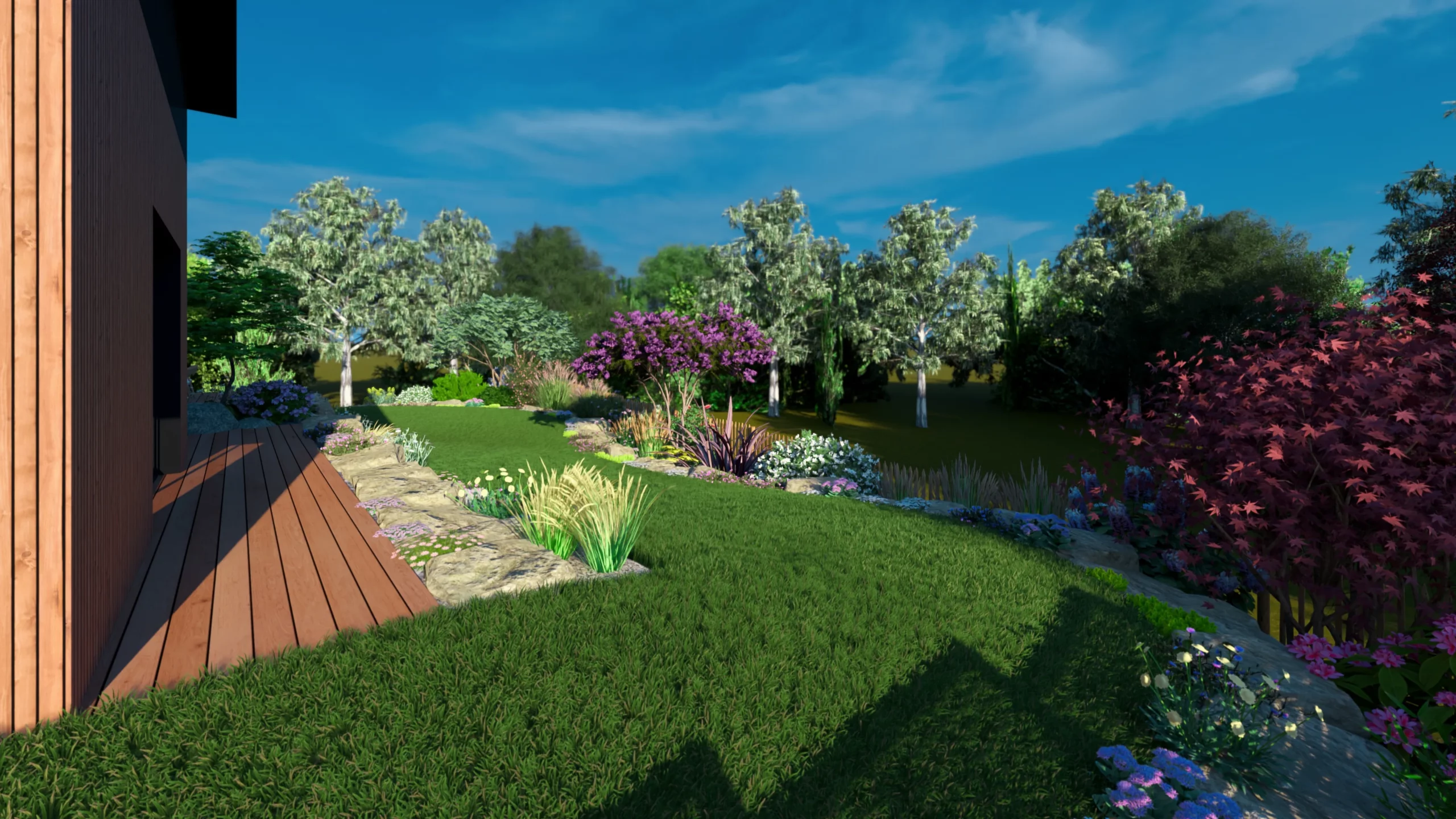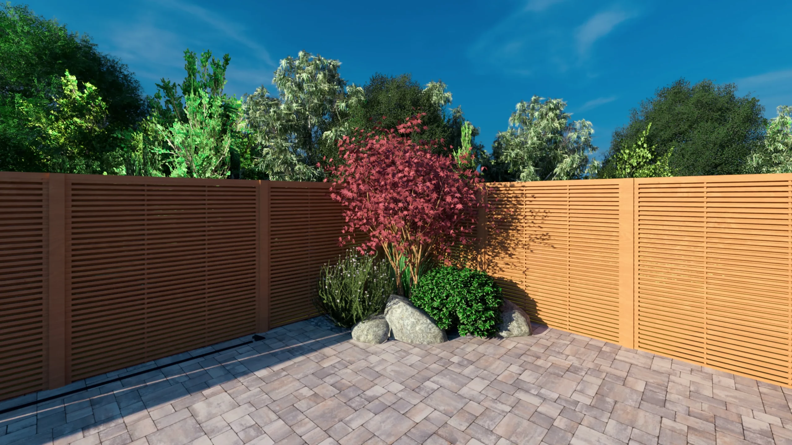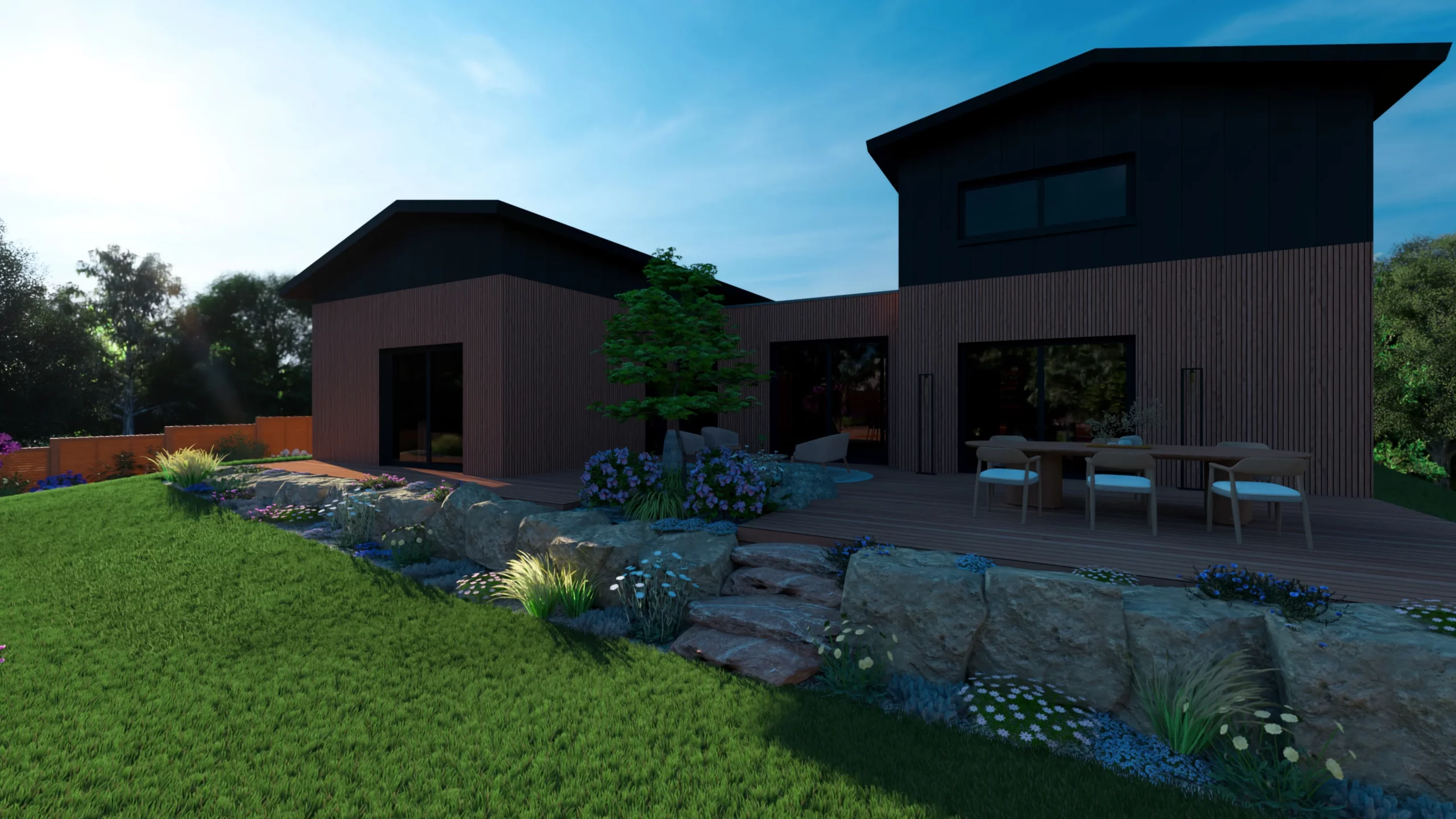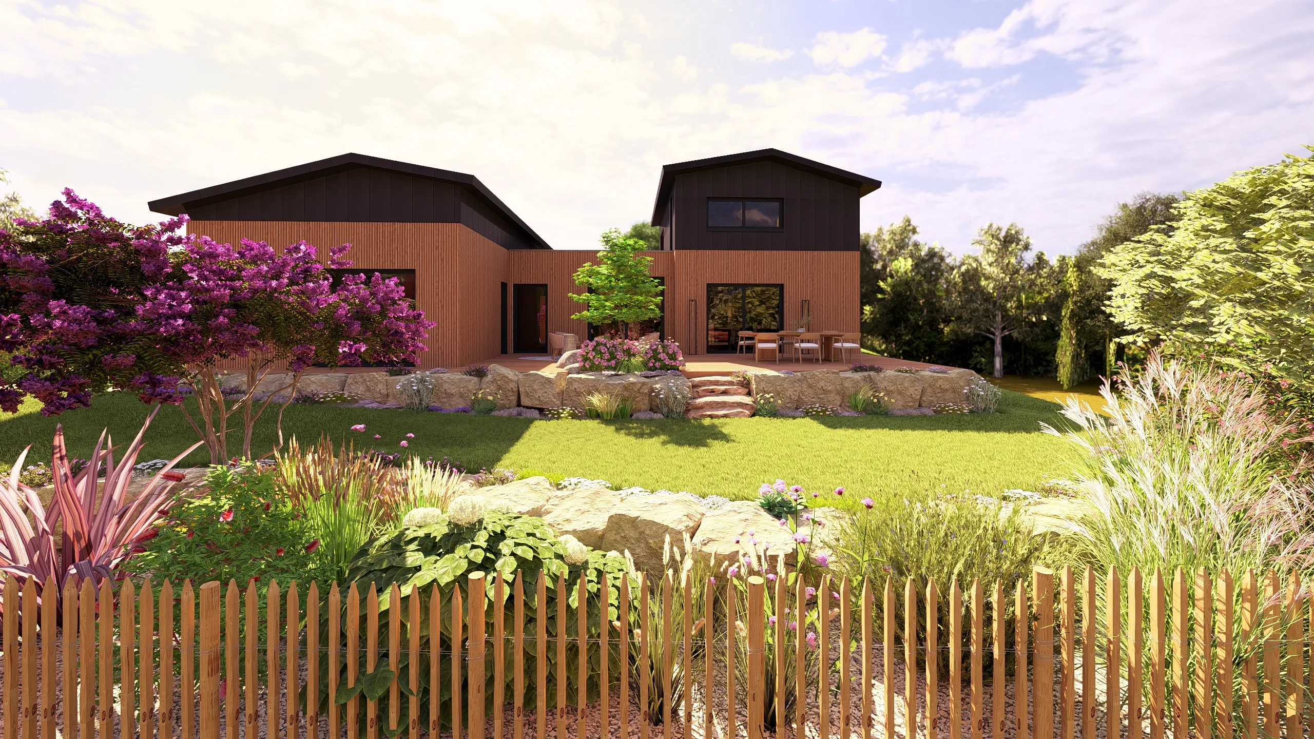 Ce jardin incarne cette démarche : un jardin contemporain, fonctionnel et équilibré, où la conception et la visualisation 3D permettent de donner une direction claire au projet.