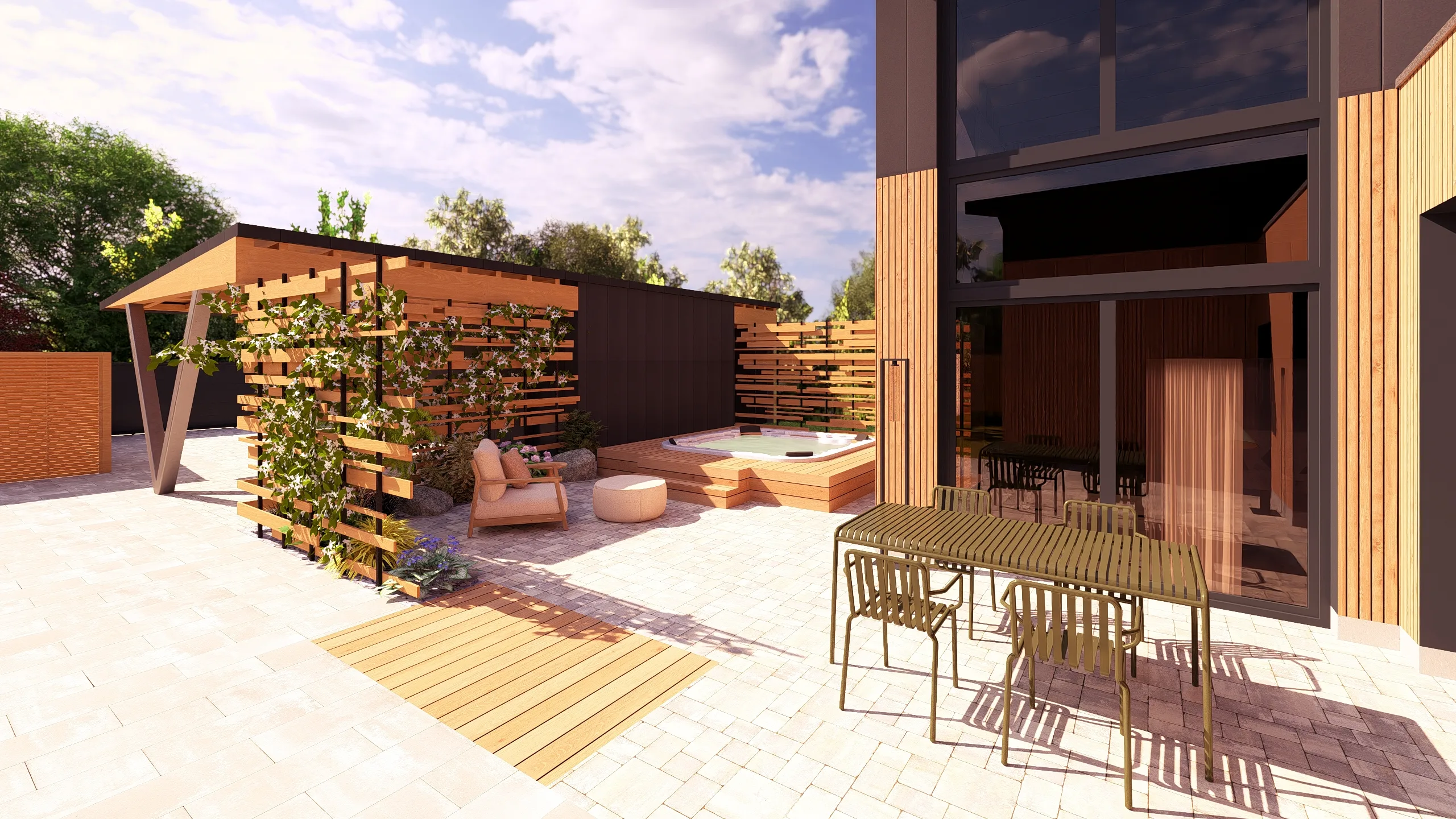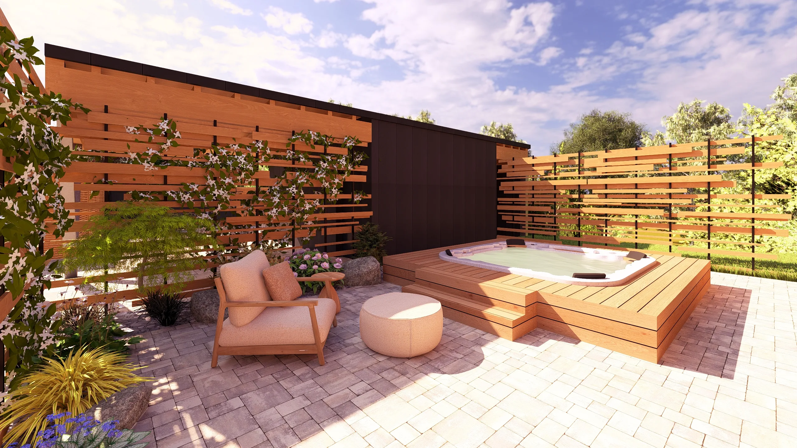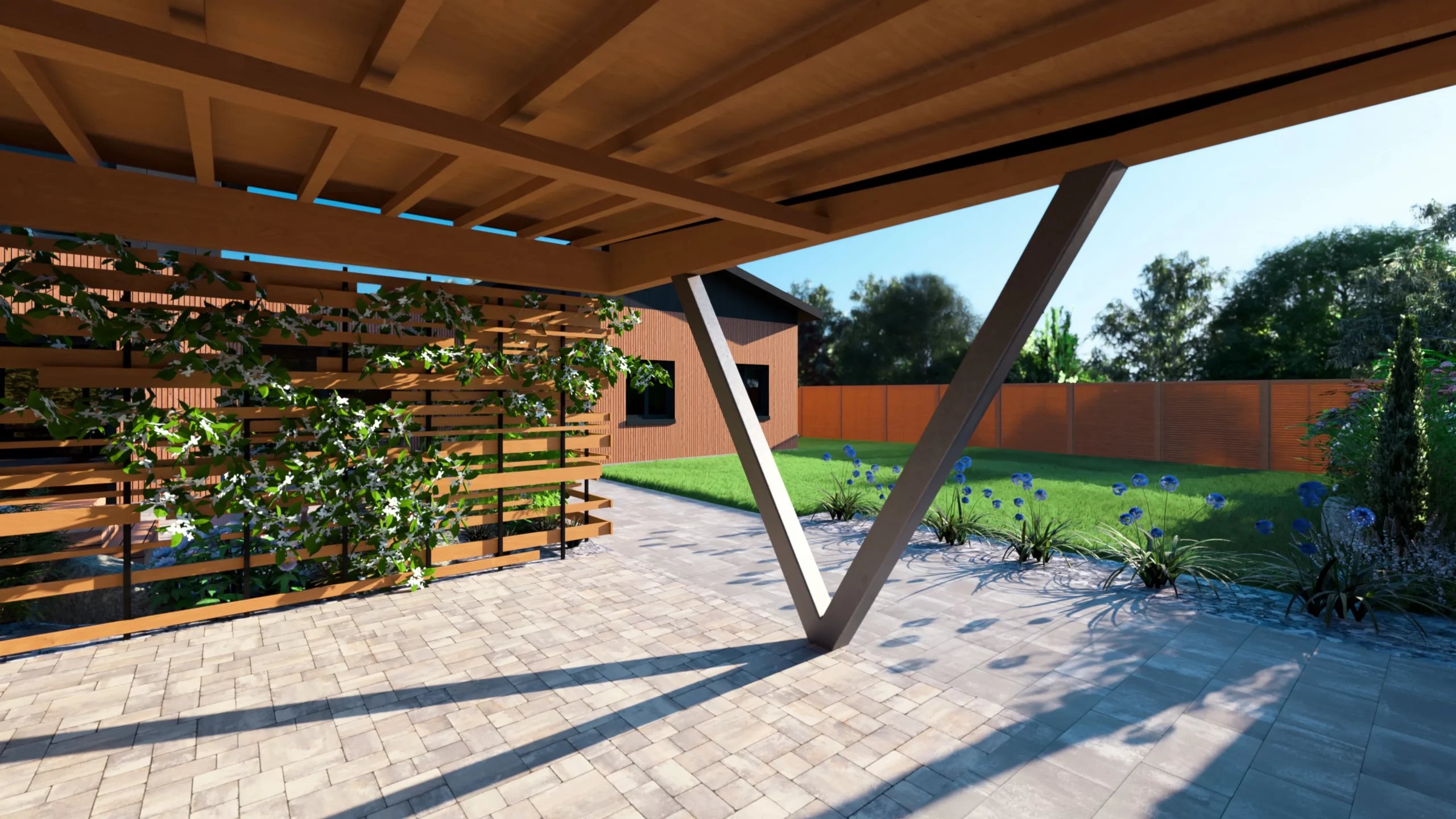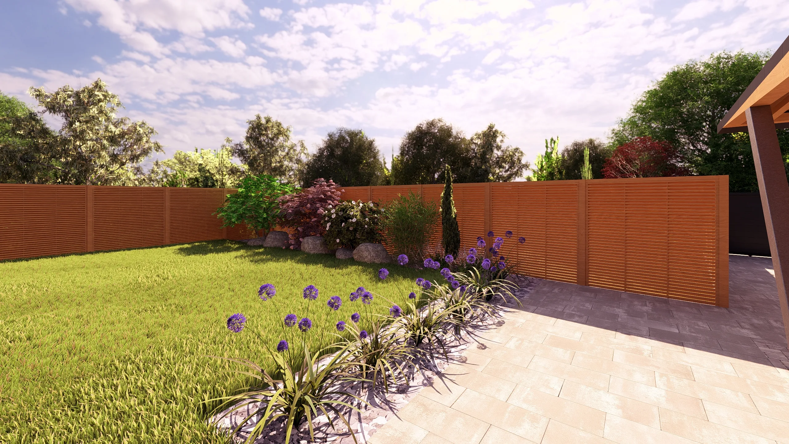 Ce jardin incarne cette démarche : un jardin contemporain, fonctionnel et équilibré, où la conception et la visualisation 3D permettent de donner une direction claire au projet.