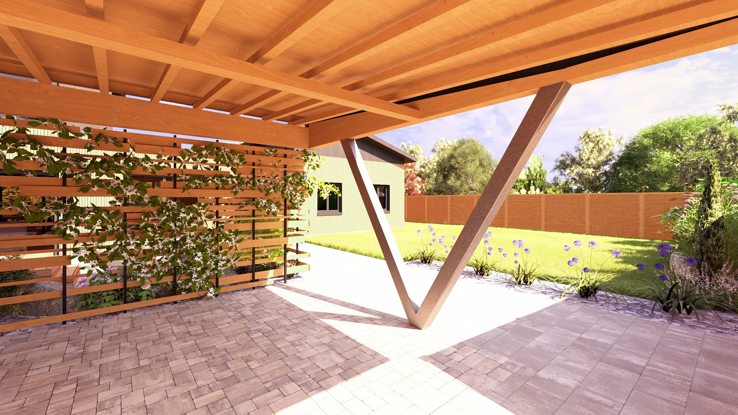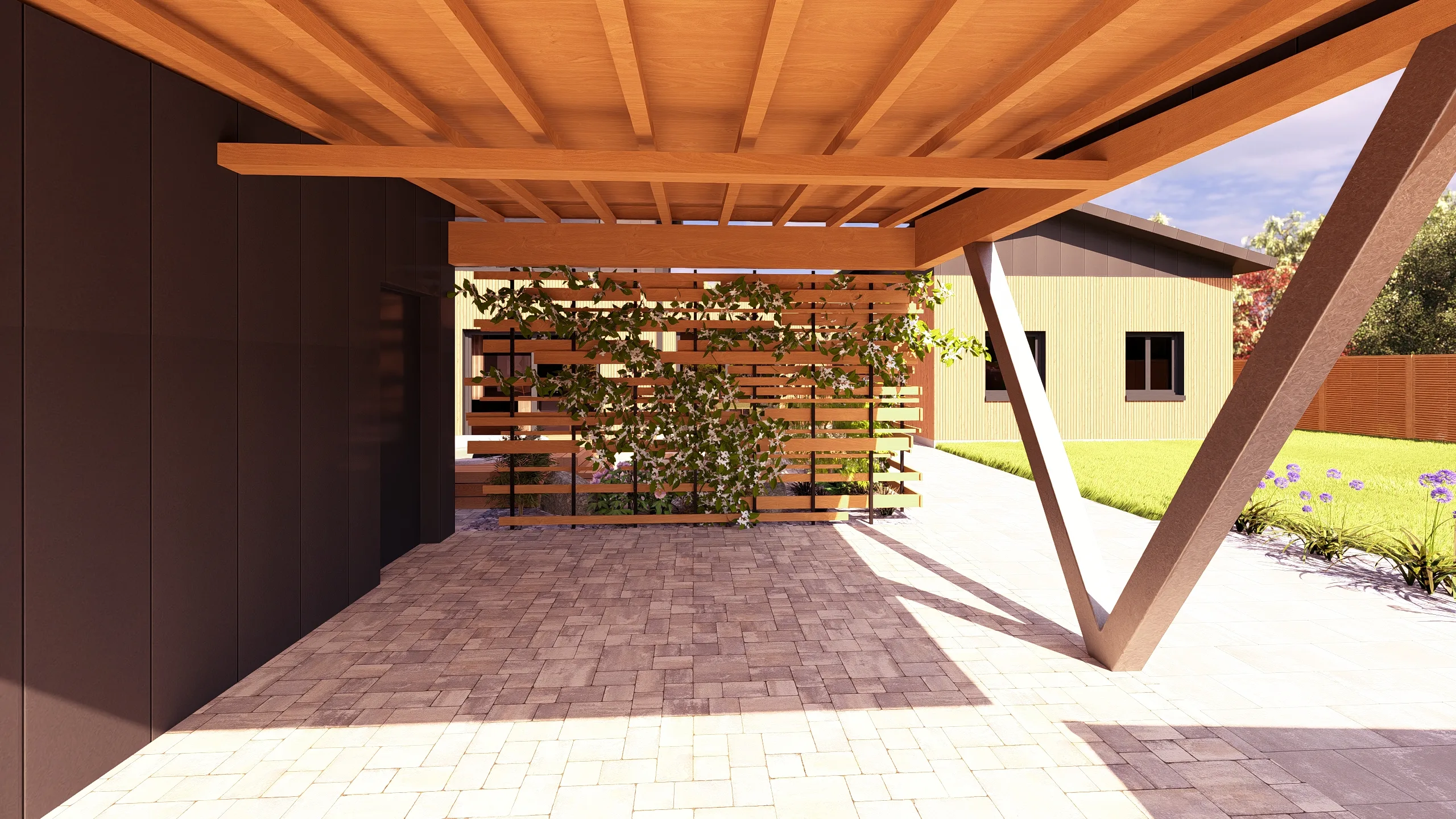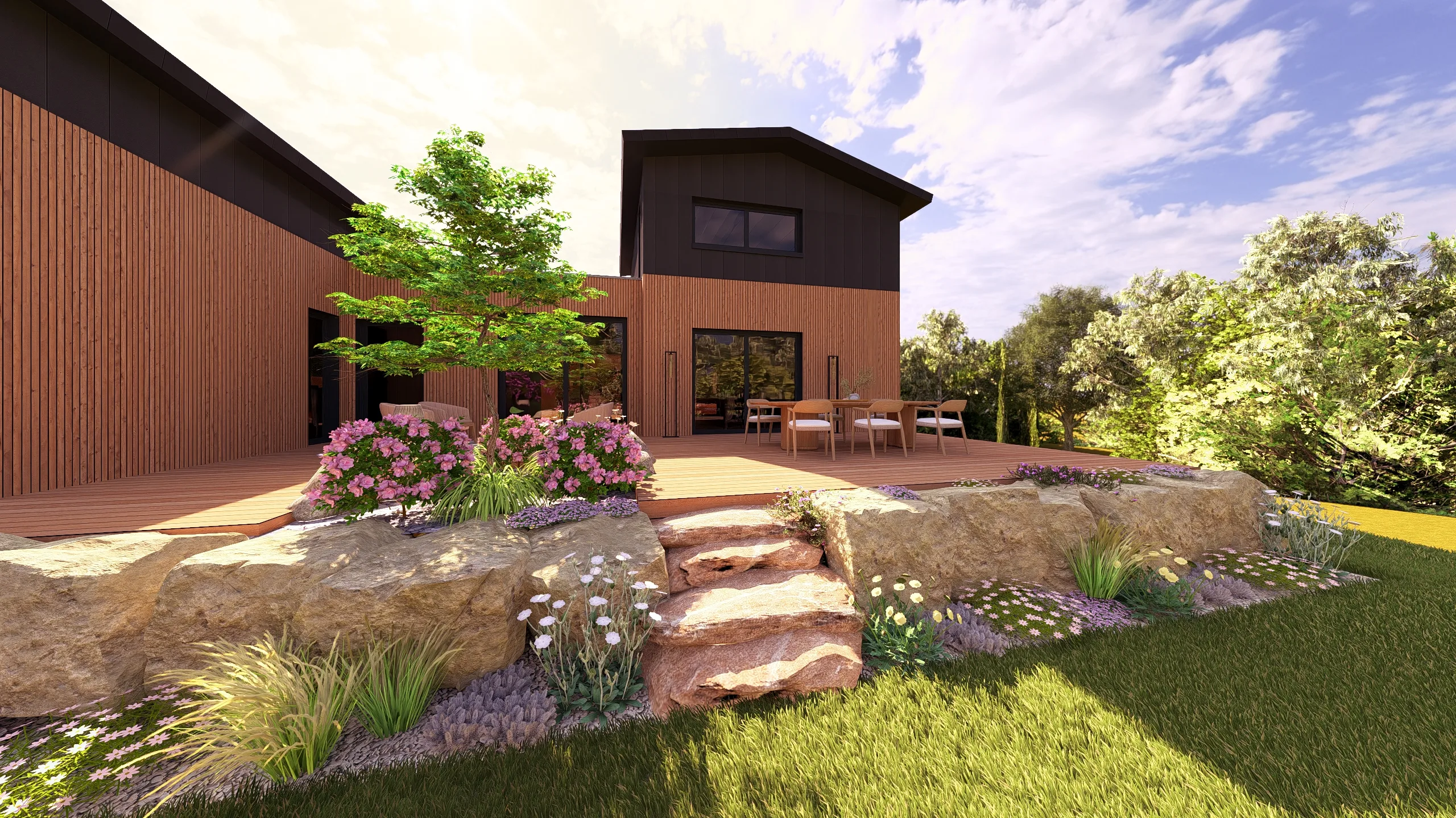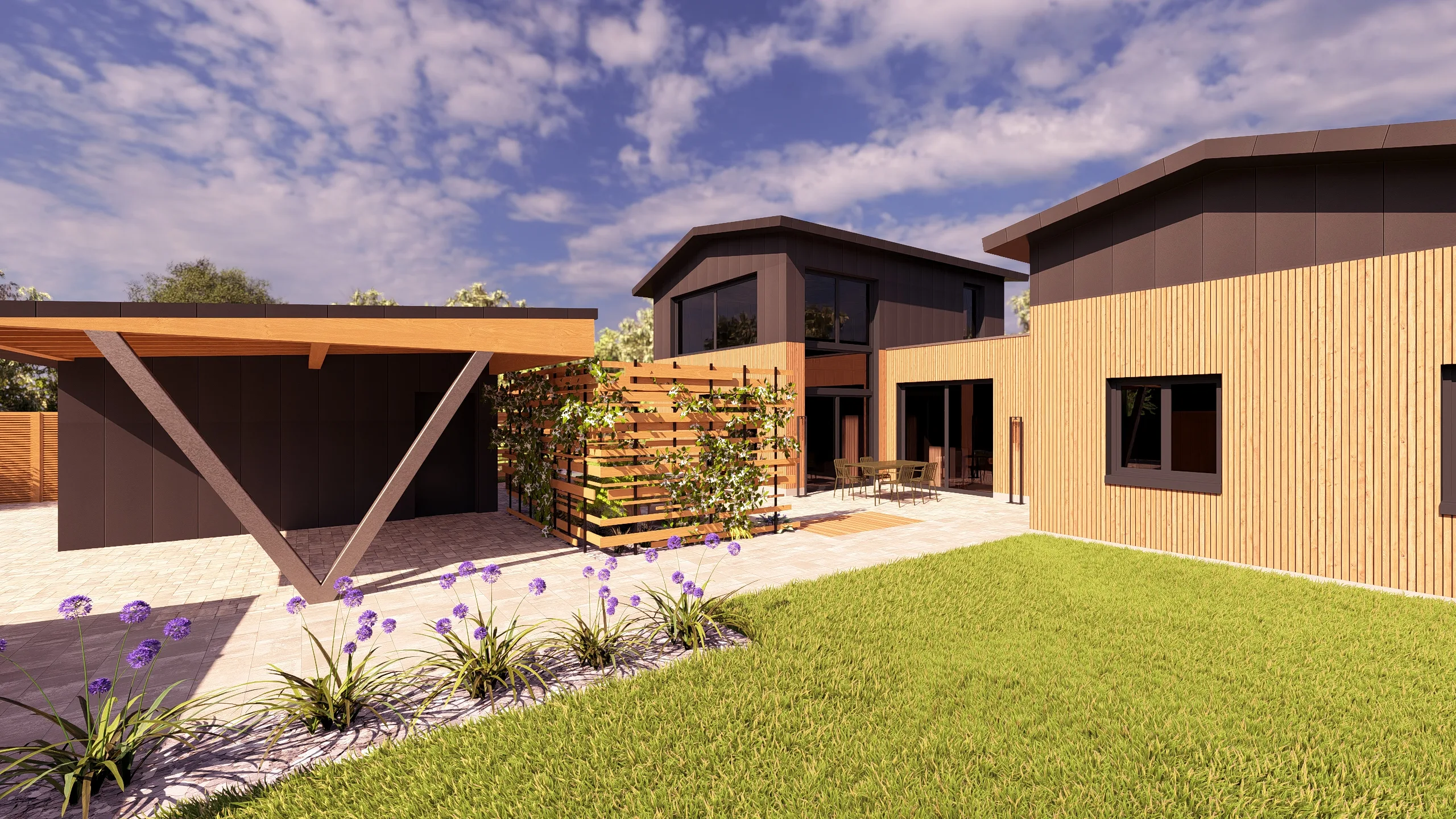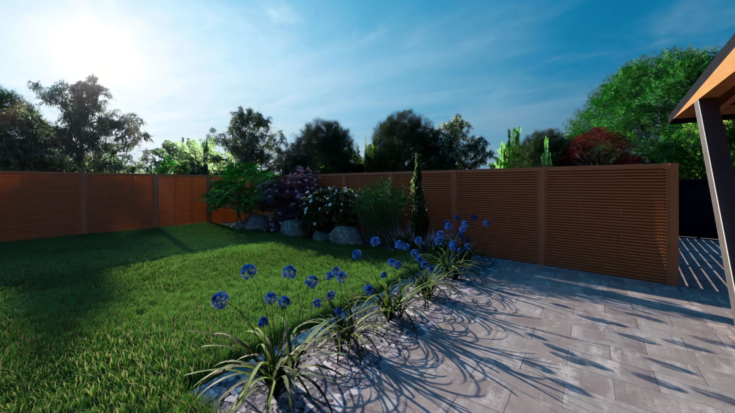 Ce jardin incarne cette démarche : un jardin contemporain, fonctionnel et équilibré, où la conception et la visualisation 3D permettent de donner une direction claire au projet.