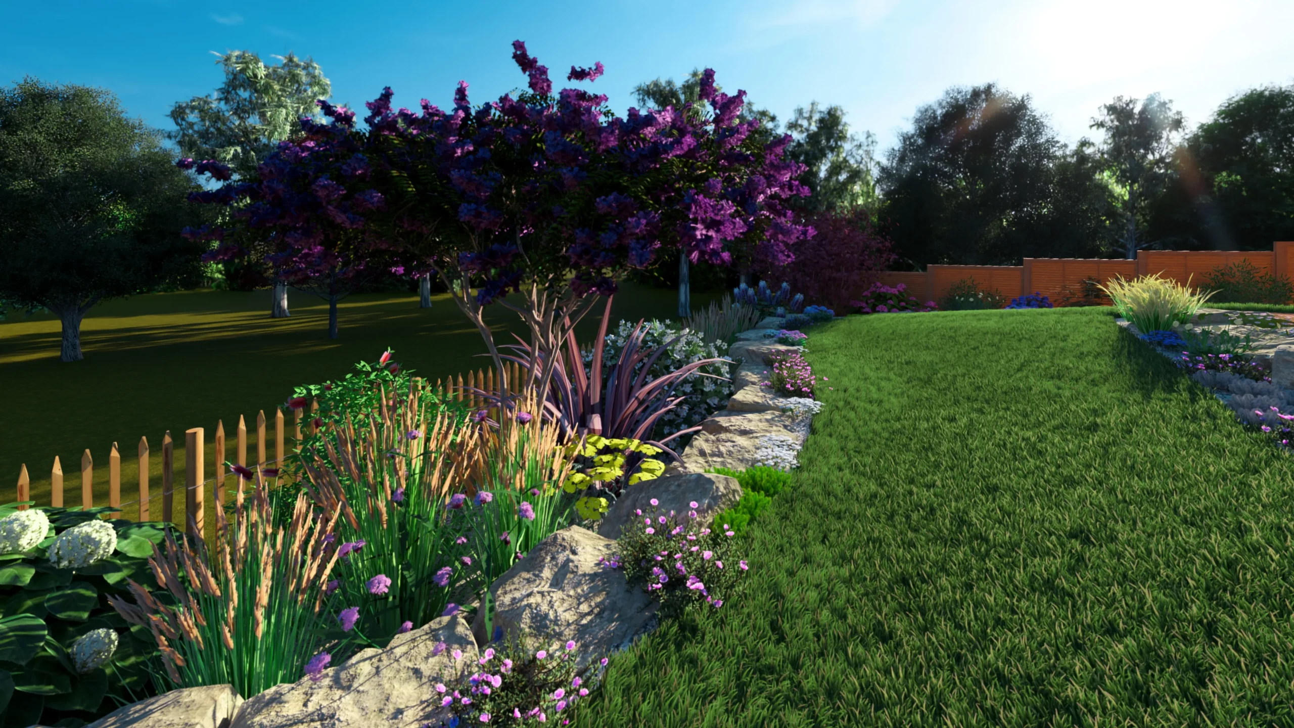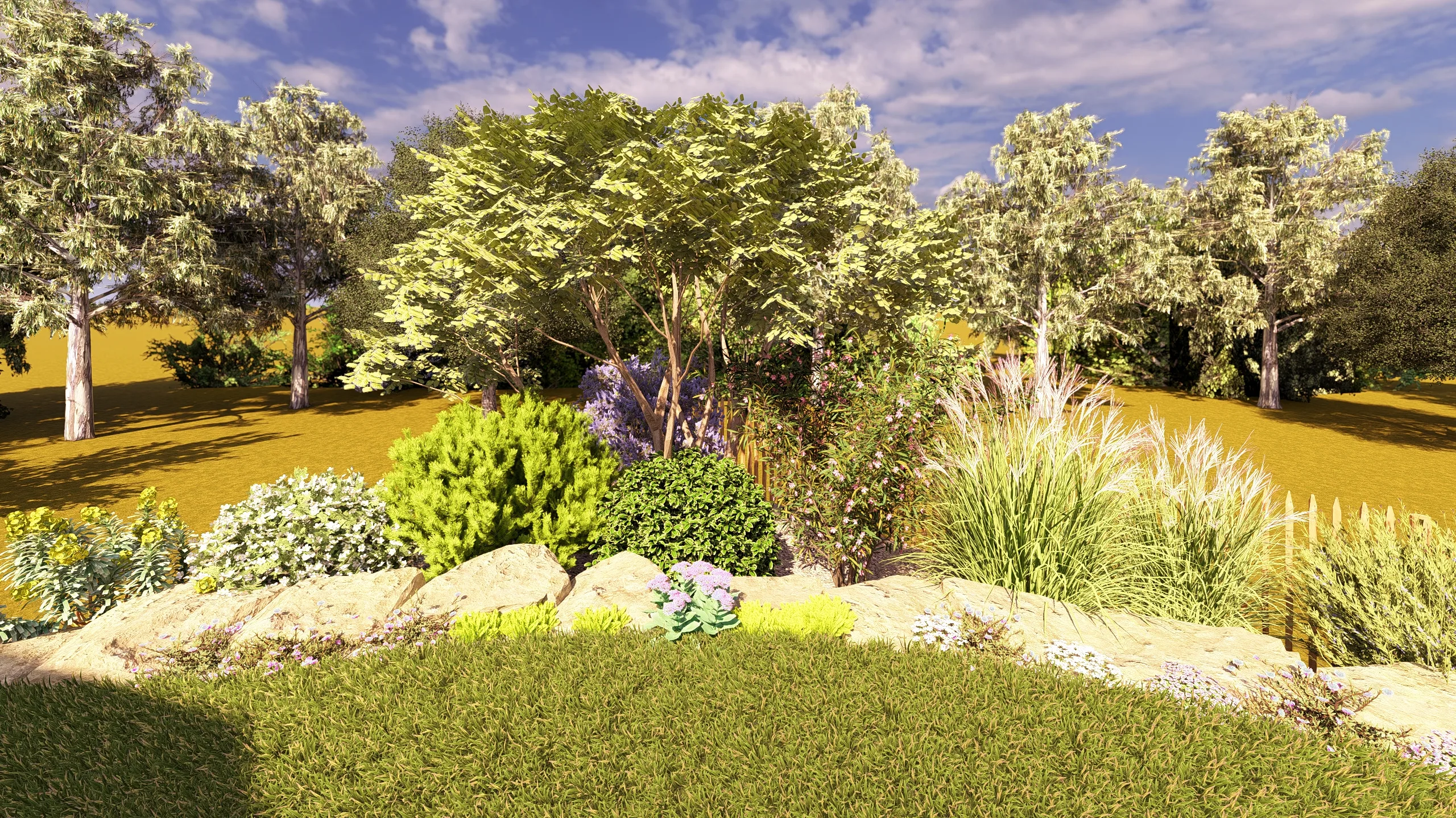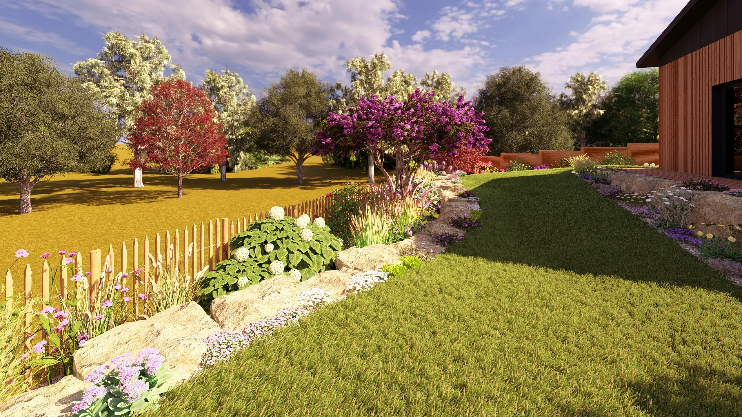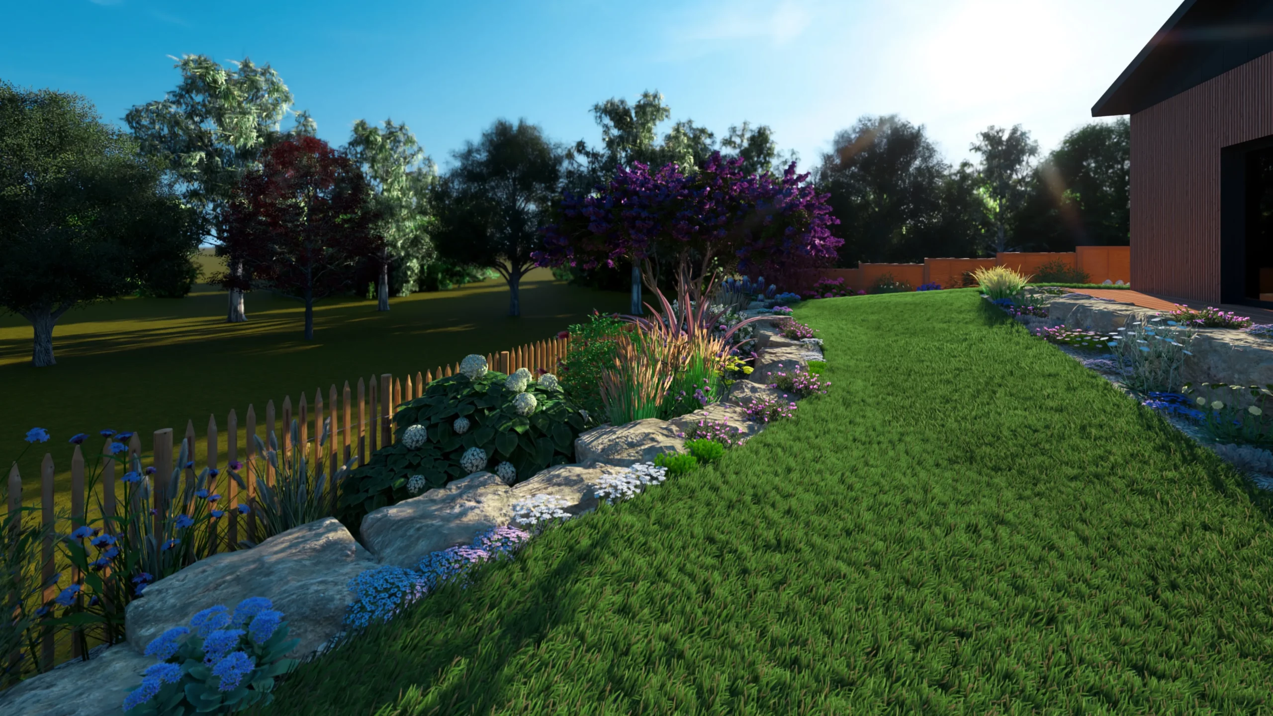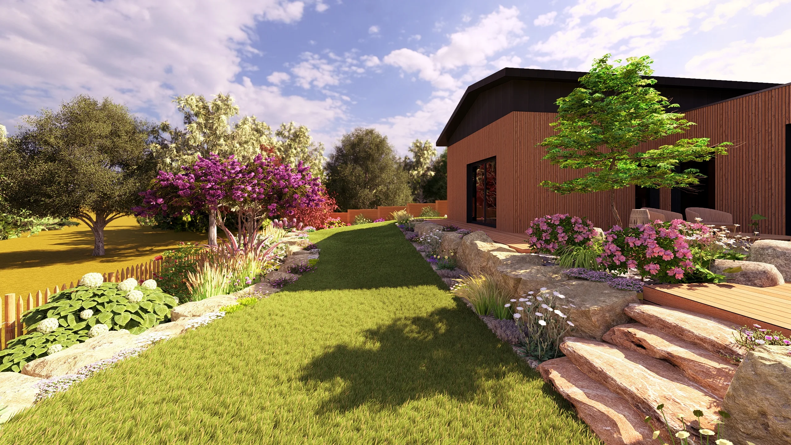 À Betton, au nord de Rennes, ce projet d’aménagement de jardin s’inscrit dans une démarche complète de conception de jardin 3D, réalisée en collaboration avec MGE Création.
